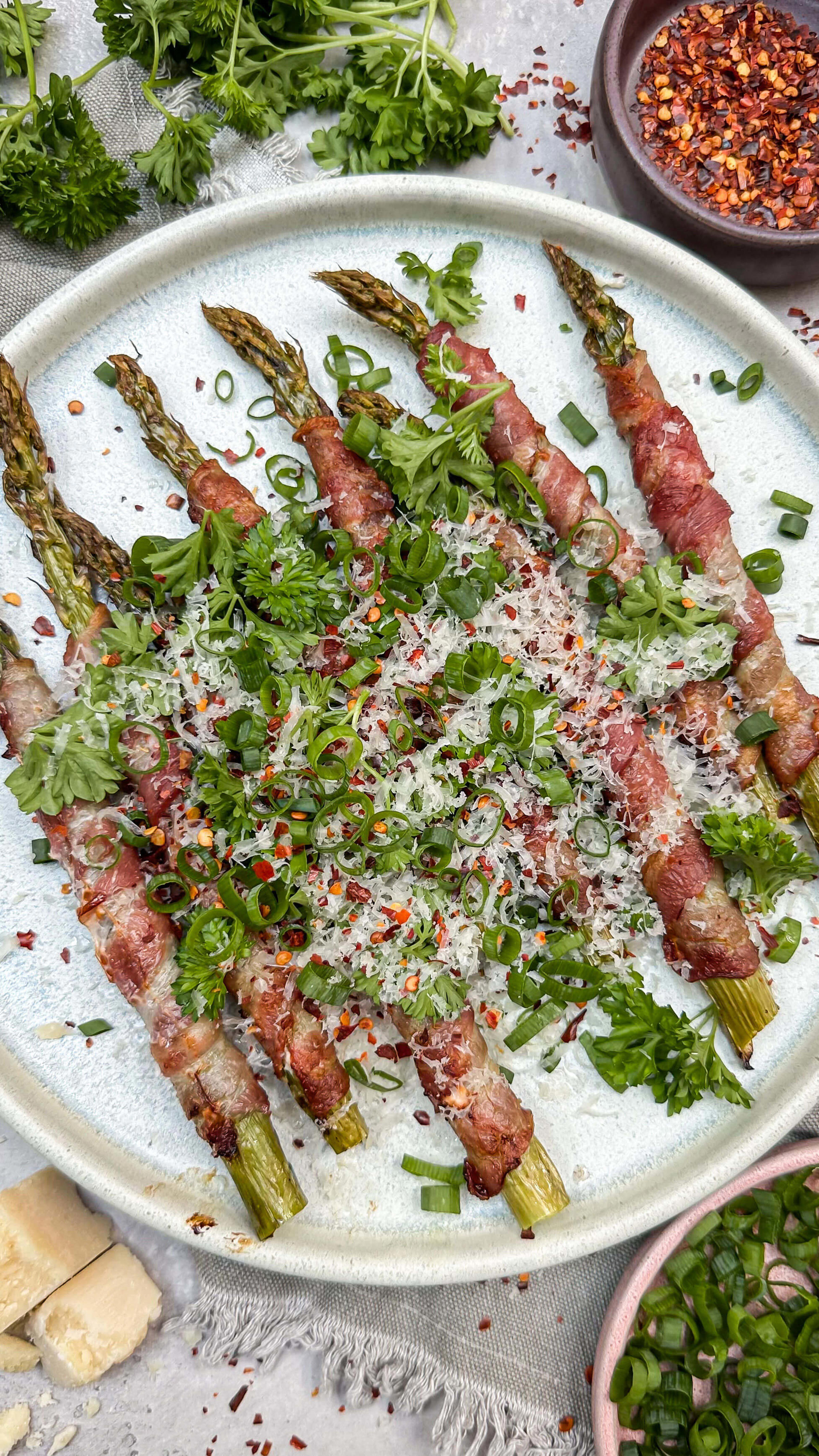 Røgsmag og grillmærker går også rigtig godt til grønne asparges. Knæk enden af, vend dem i lidt olivenolie, lidt salt og grill dem i 5-6 minutter. Giv dem en smule citronsaft og revet parmesan inden servering.