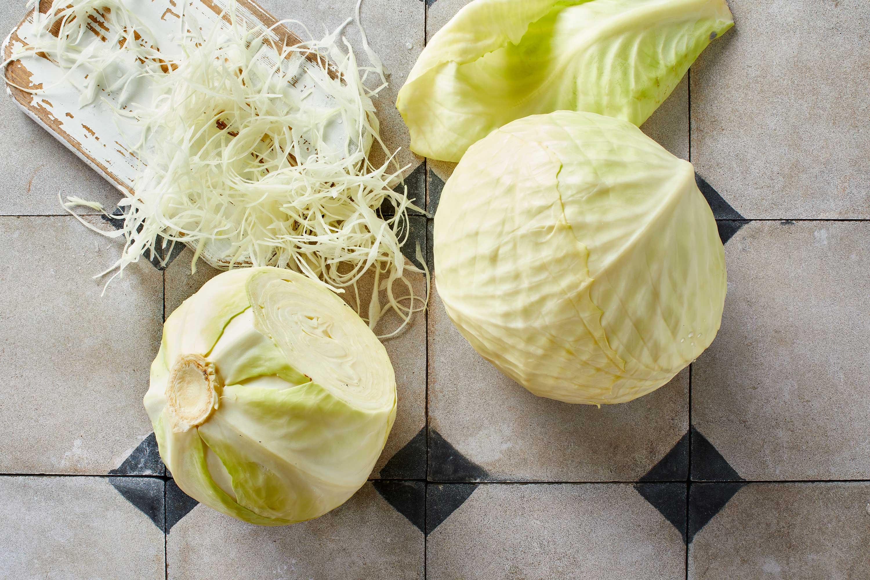Frisk hvidkål har tætte, sprøde blade, der er uden pletter eller misfarvninger.
