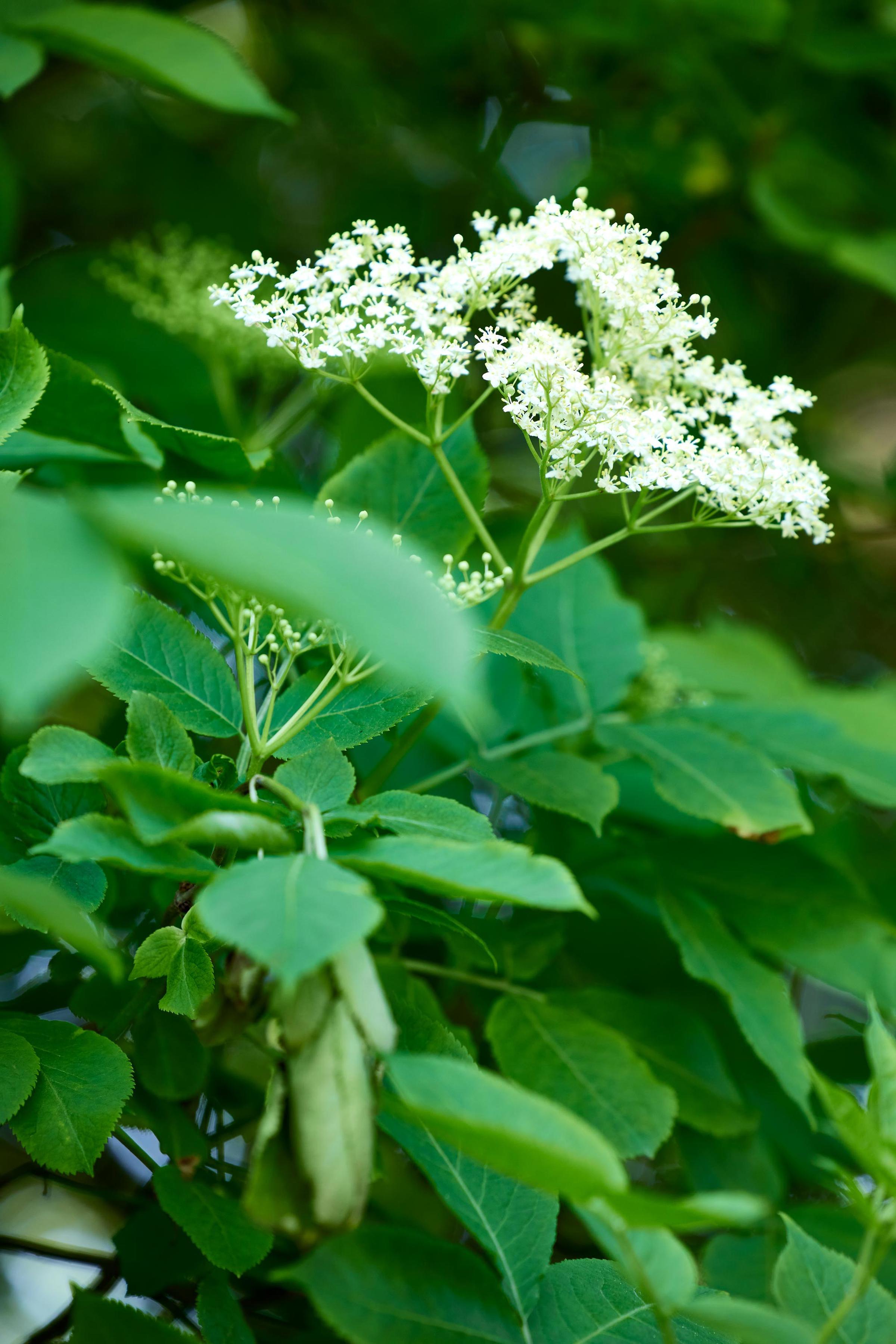 Hyldeblomsten skal have hvide toppe og grønne, spændstige grene.