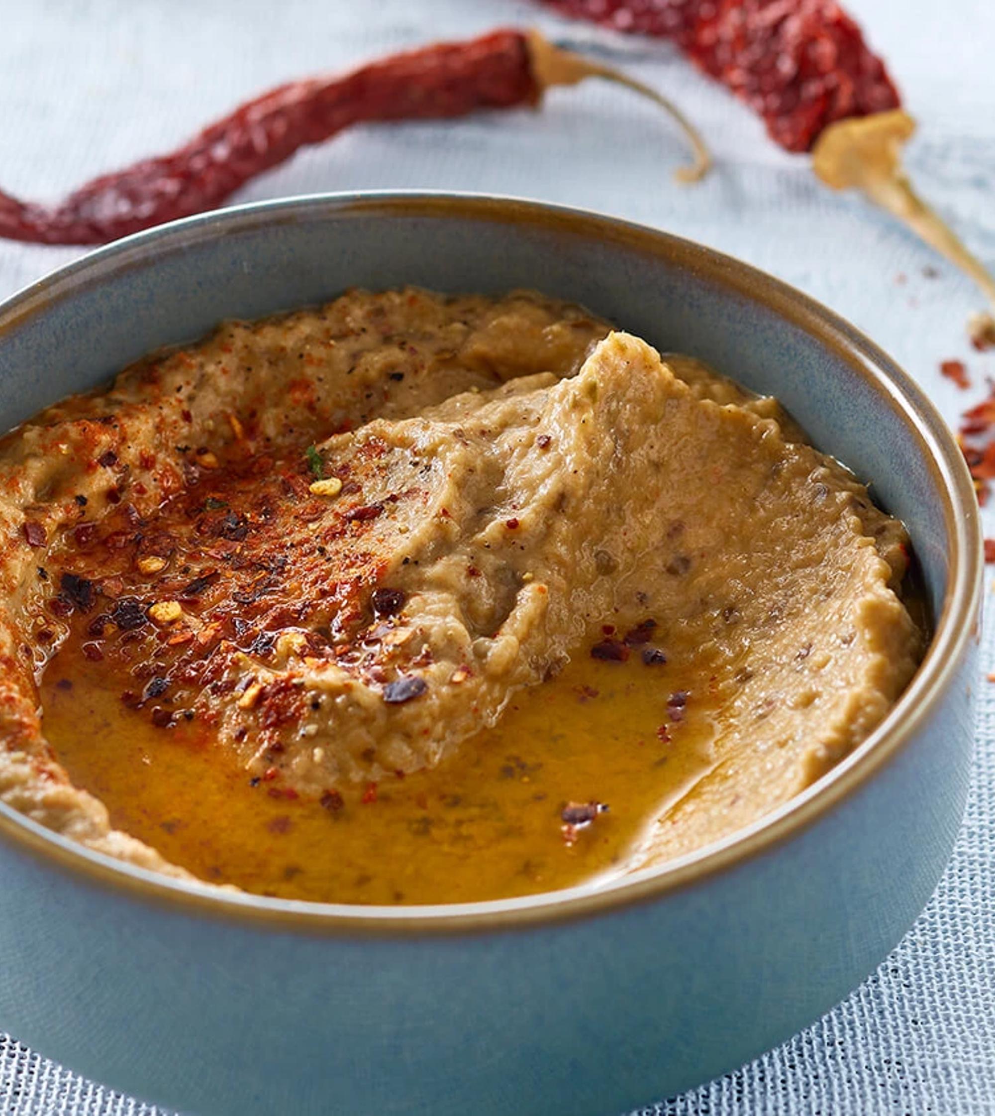 Flute med mascarpone, silkeskåret skinke, bagte tomater og basilikum