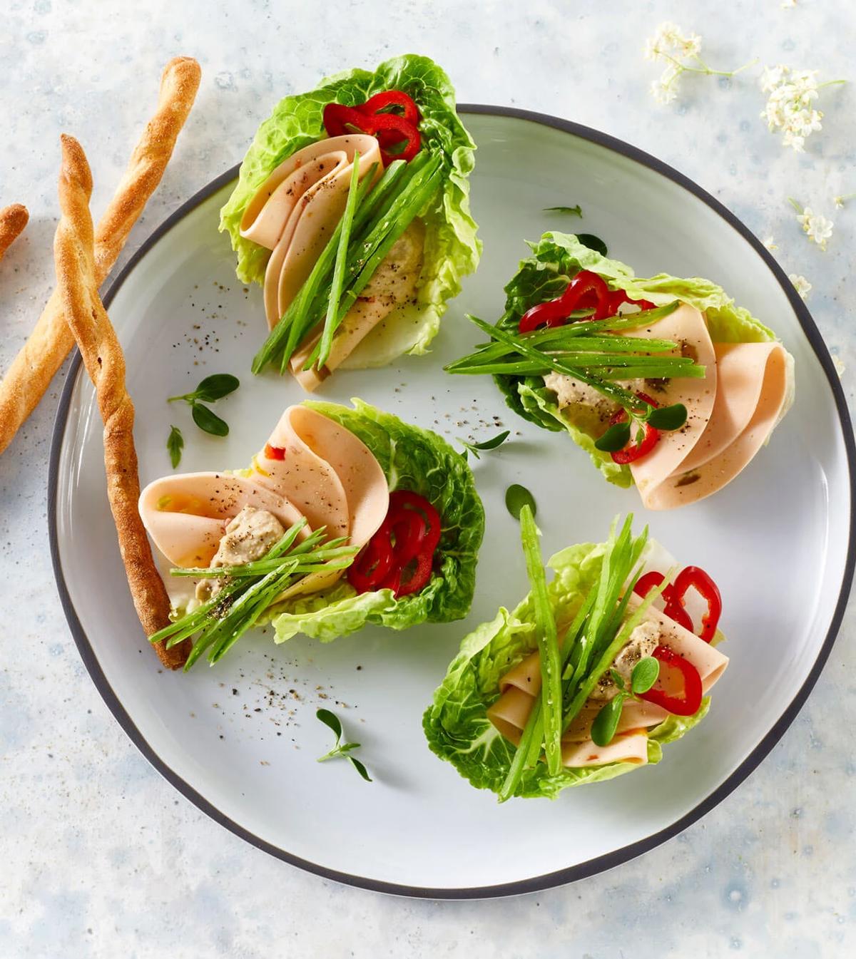 Friske salatblade efter eget ønske, f.eks. rucola og feldsalat