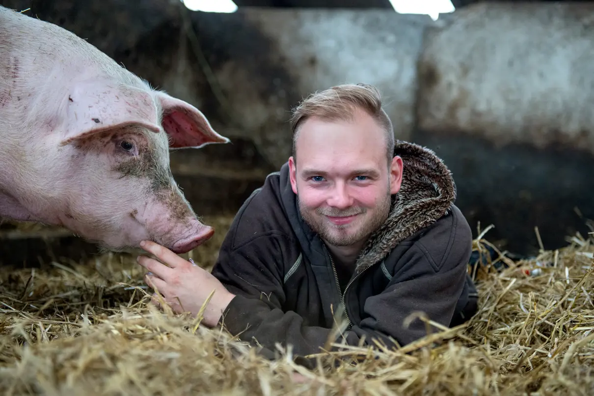 - Det er altså bare en fornøjelse at arbejde med økologi. Her er man tættere på dyrene. Grise har næsten en personlighed, og det er sjovt at hygge med dem, når jeg har lidt tid til overs. En gris er sky, en anden er nysgerrig, mens en tredje er drilsk, vil bide mig og lege. Derfor kan jeg godt gå og grine lidt af mine dyr, når de vælter rundt i halmen og minder mig om hundehvalpe.