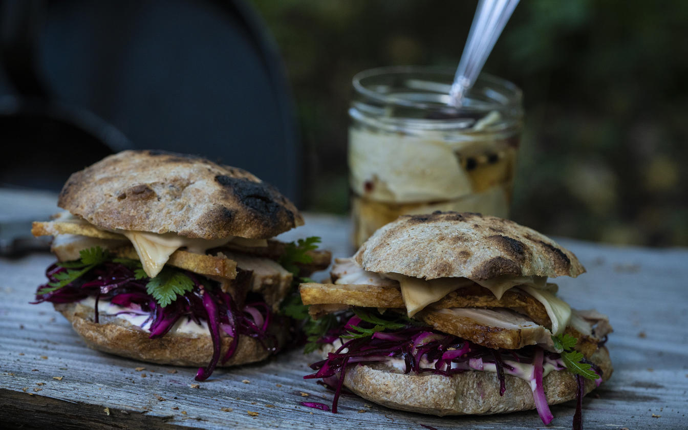 Bålstegt sandwich med flæskesteg og råsyltet knoldselleri