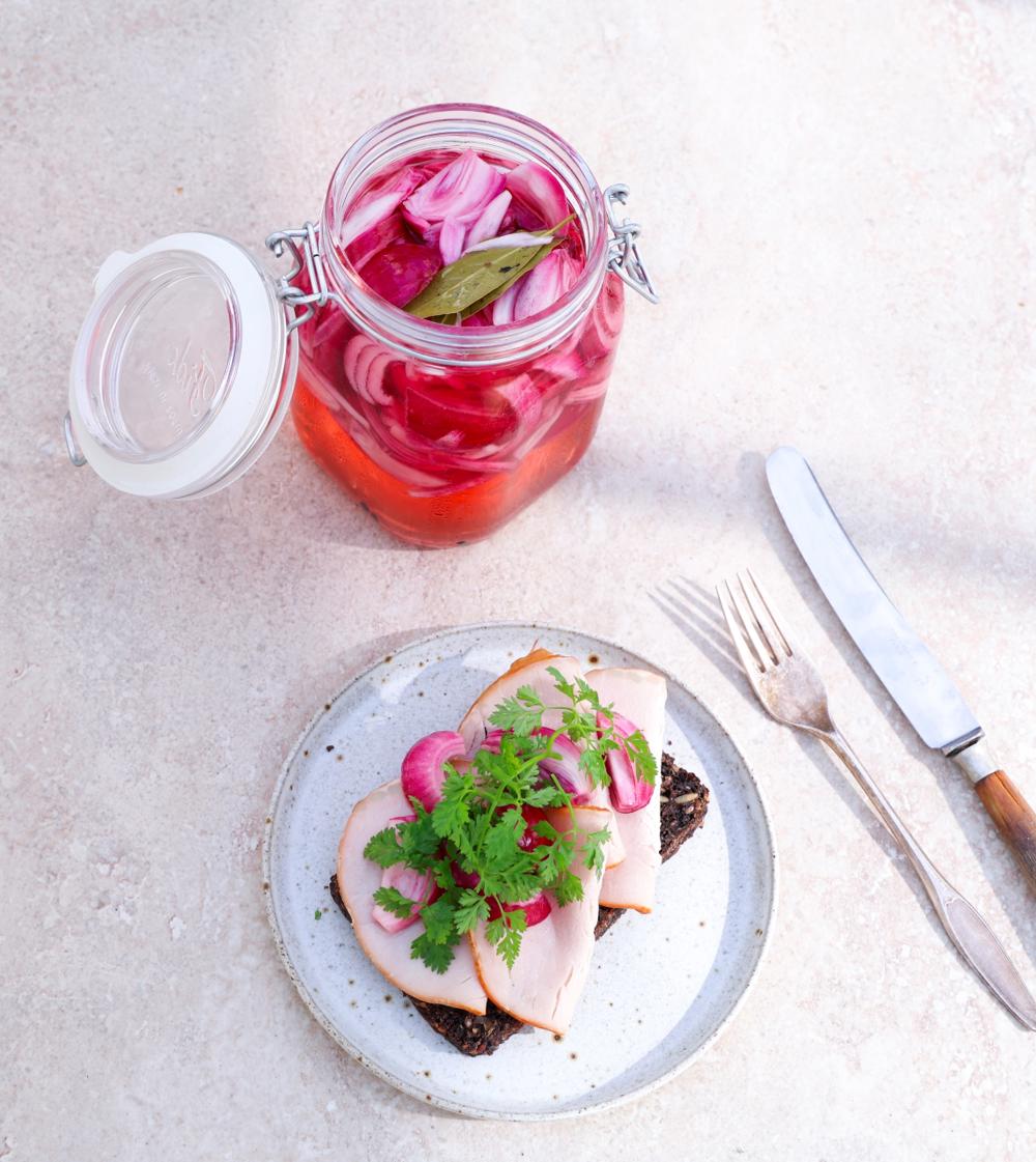 Grillet cuvette i rødvinsmarinade og pastasalat