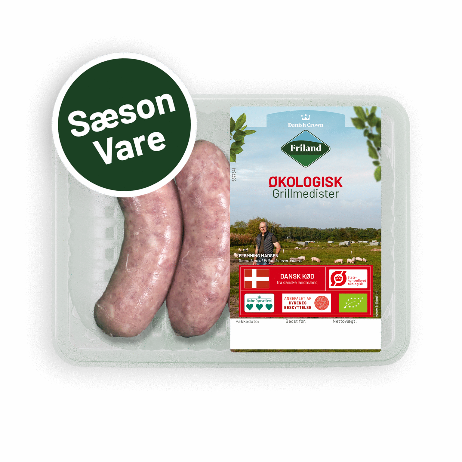 350 gØkologisk grillmedister fra Friland Økologi er en sæsonvare. Krydderierne til medisterblandingen er nøje udvalgt, og de bidrager til en velsmagende medister med en grov kødstruktur, der bibeholder saft og kraft ved tilberedning. Produktet findes i flere vægte.