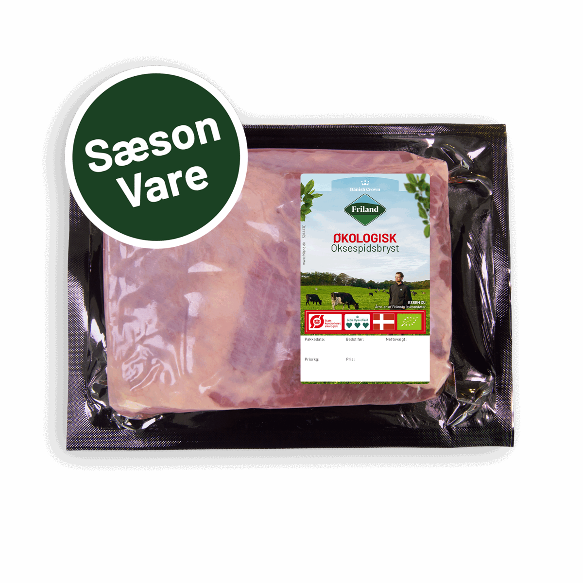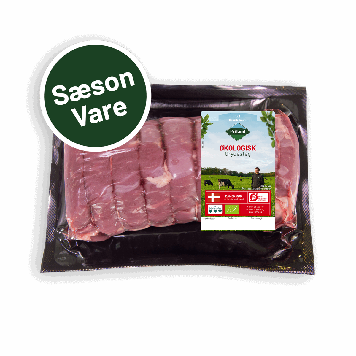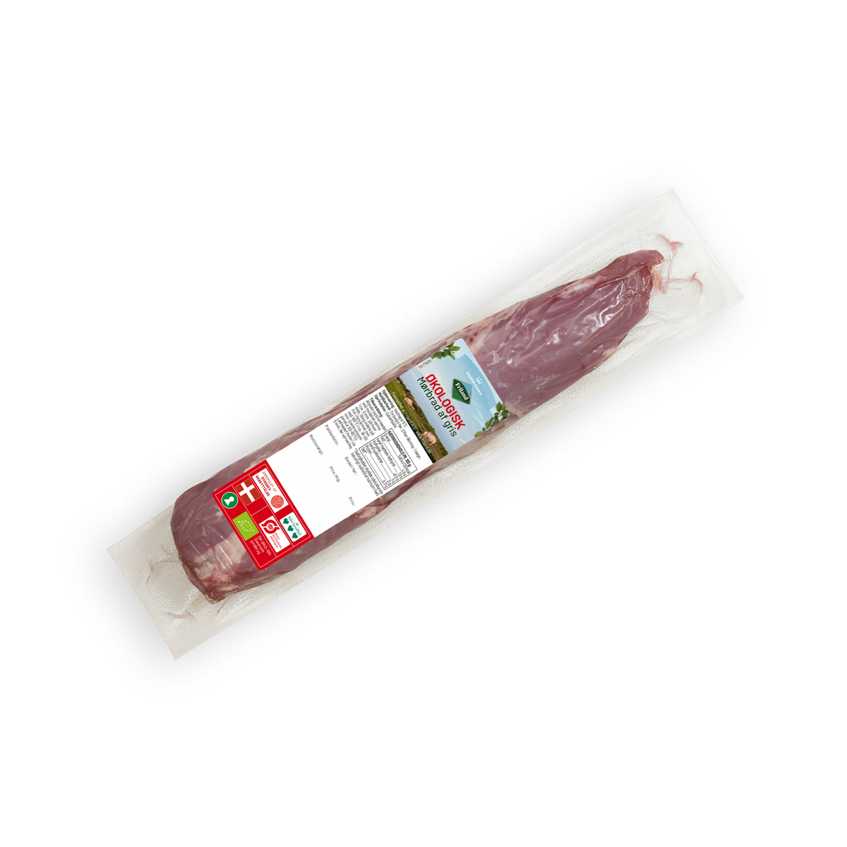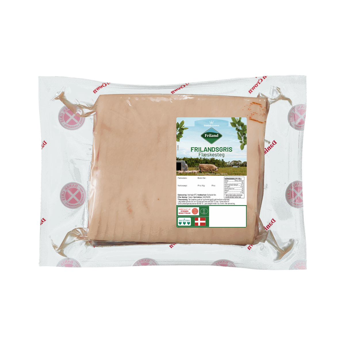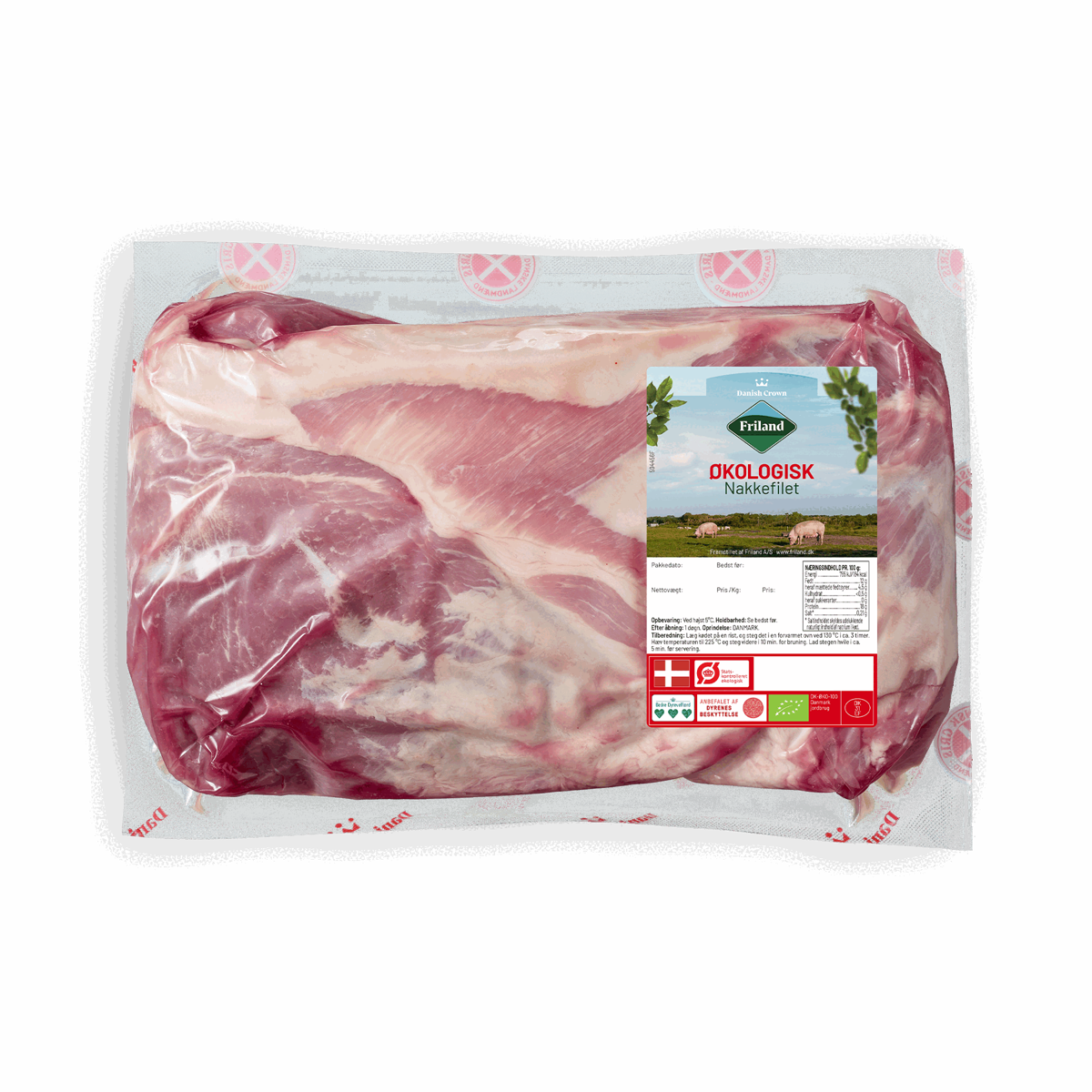 1200 gØkologisk flæskesteg fra Friland er velskåret af udvalgte råvarer. Produktet findes i flere vægte.