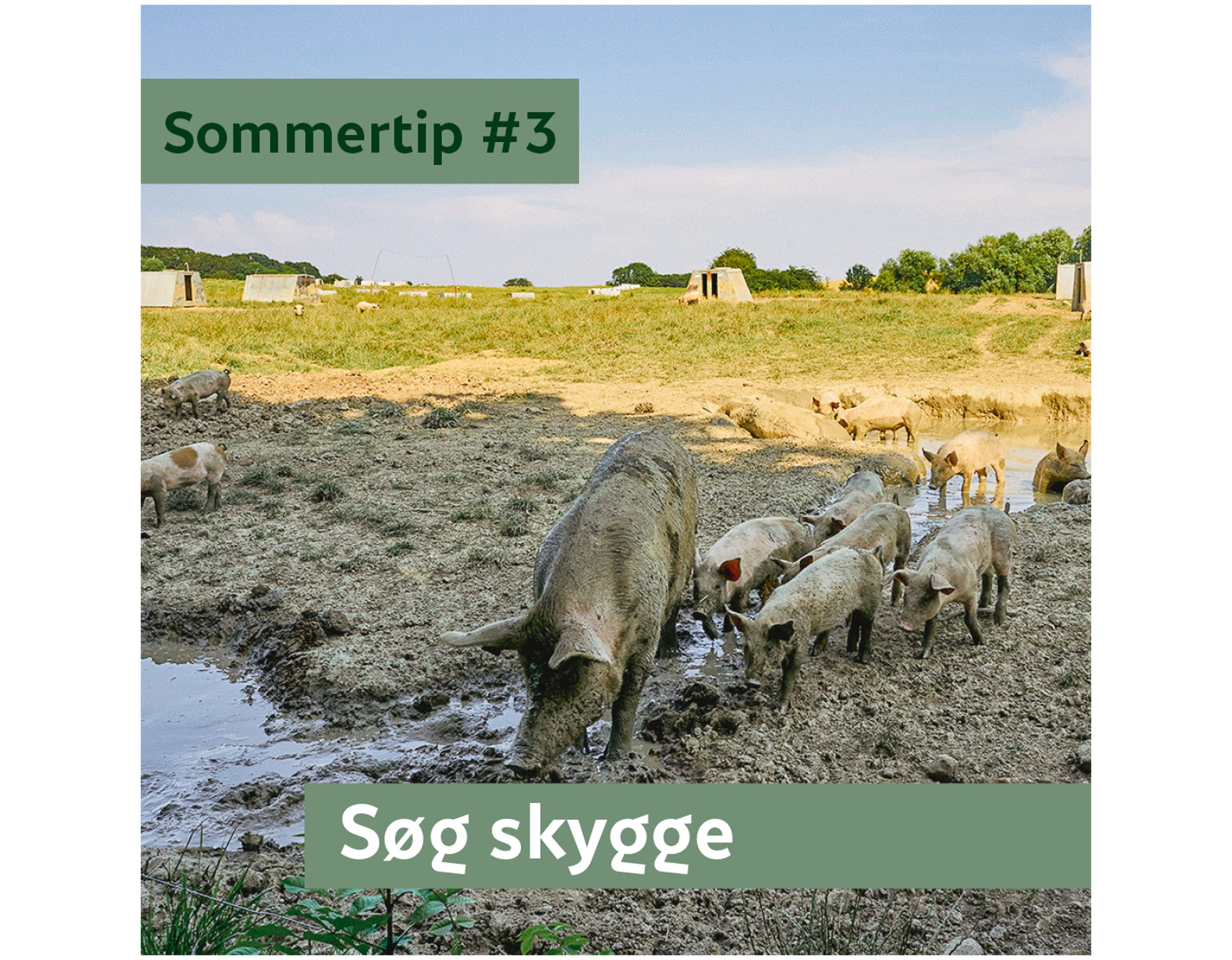 Hos alle vores grise skal der altid være mulighed for at søge skygge, så grisene kan køle lidt ned. På marken har grisene også adgang til sølehuller hele sommeren. Det er mudderhuller med masser af vand i 💦