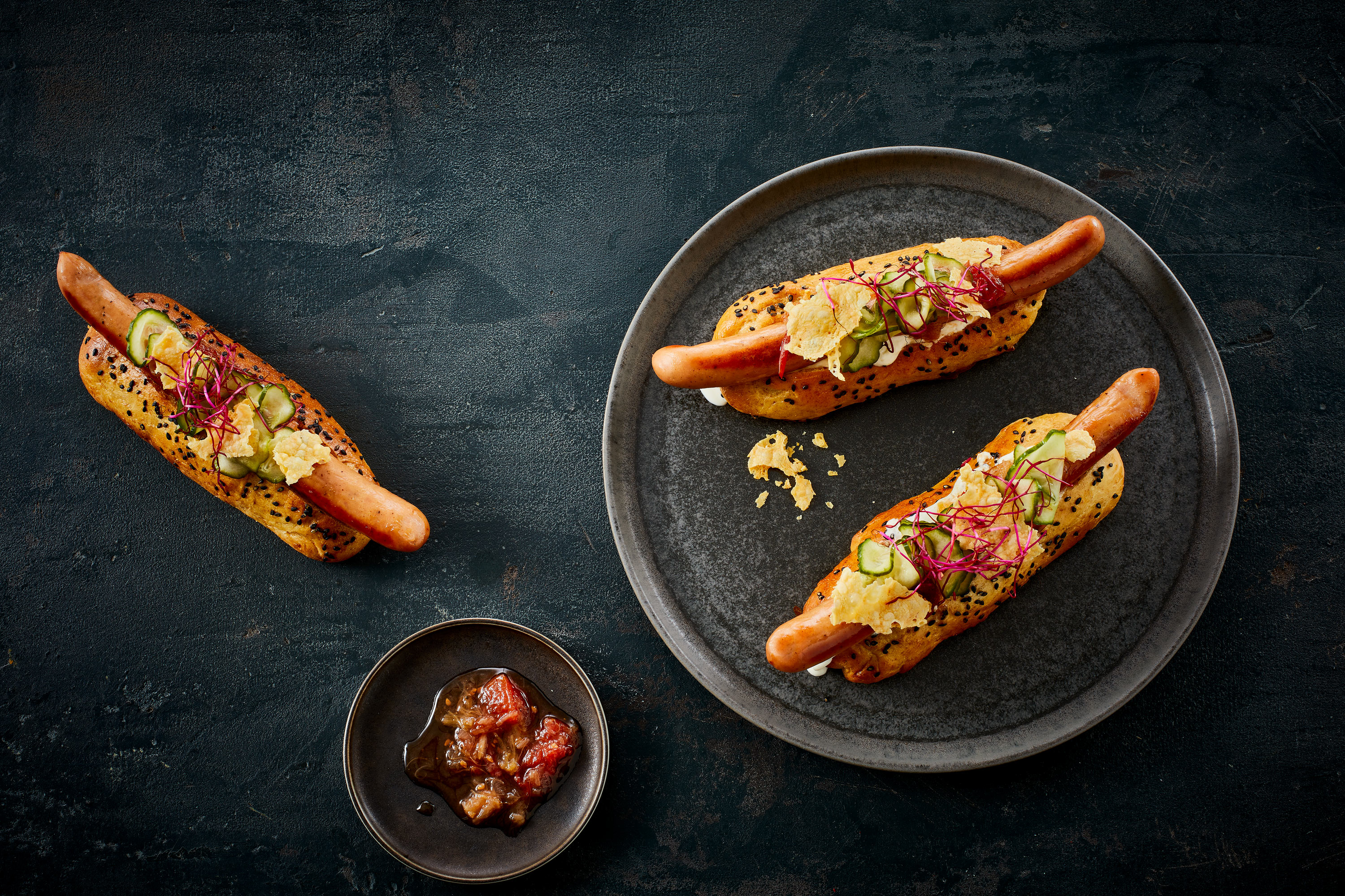 En gourmet hotdog er den lidt mere gennemførte version af den klassiske favorit – og her får du en udgave med masser af smag og små detaljer, der gør forskellen. Saftige GØL Grillpølser bliver sat sammen med spicy tomatchutney, appelsin- og ølsyltet fennikel samt en cremet persille‑ og citrondressing. Det giver en hotdog med både syre, sødme og varme – lige til dig, der gerne vil løfte hotdog-aftenen et niveau op.