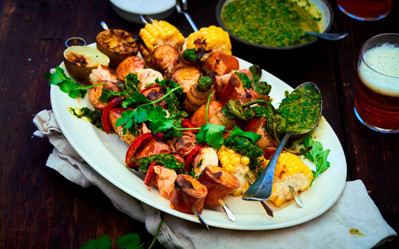 Opskriften giver ca. 4 af hver grillspyd