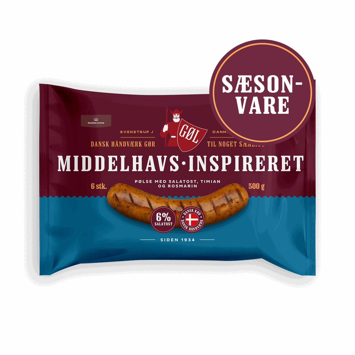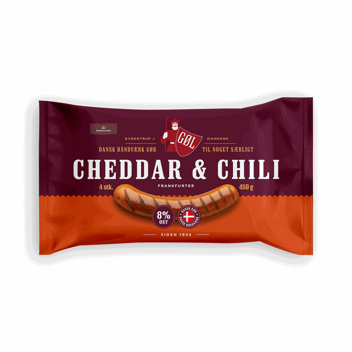GØL Hotdogpølser er en mildt krydret rød pølse med en afbalanceret blanding af peber, muskatnød, muskatblomme, koriander og spidskommen.