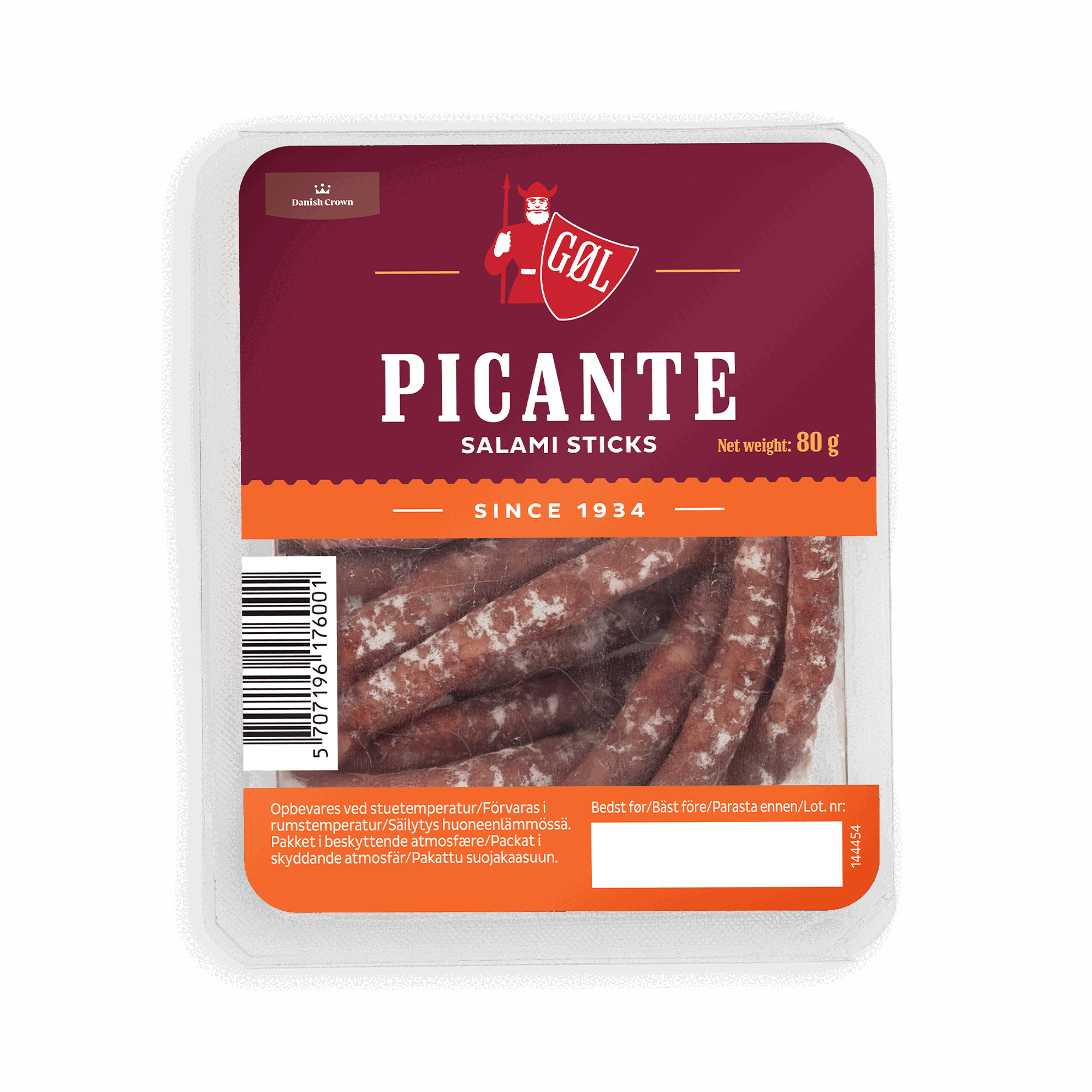 80 gGØL Classic salami stick er en vellidt klassisk snack, der er mildt krydret med hvidløg og peber. Den velafbalancerede og milde krydring er nøje udvalgt, så snacken kan nydes af hele familien. Server for eksempel denne salami stick som en nem del af en tapasmenu sammen med andre tapasretter. Den klassiske salami snack er også god som en lille appetitvækker inden middagen eller sammen med en kold øl på en varm sommerdag