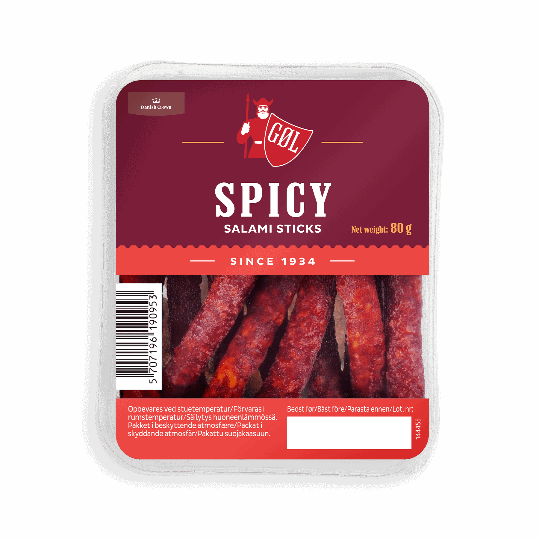 80 gGØL spicy salami stick er med sit krydrede element fra sød paprika, peber og chili i kombination med sin æstetisk flotte aflange form en perfekt ingrediens til enhver ret eller festlig lejlighed. Smagen mellem krydderierne er fint afstemt, hvilket gør den selvskreven til den lille sult. Prøv denne forkælede salami stick som en smagsoplevelse til gæstemad eller tapas bordet, sammen med ost, vin, brød og et godt glas vin. Disse sticks er også ideelle som en lille appetitvækker inden middagen eller sammen med en kold øl på en varm sommerdag.