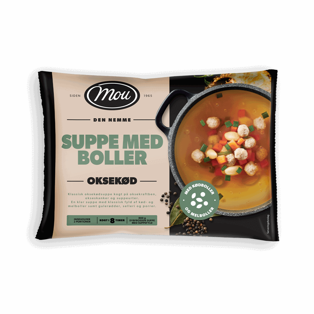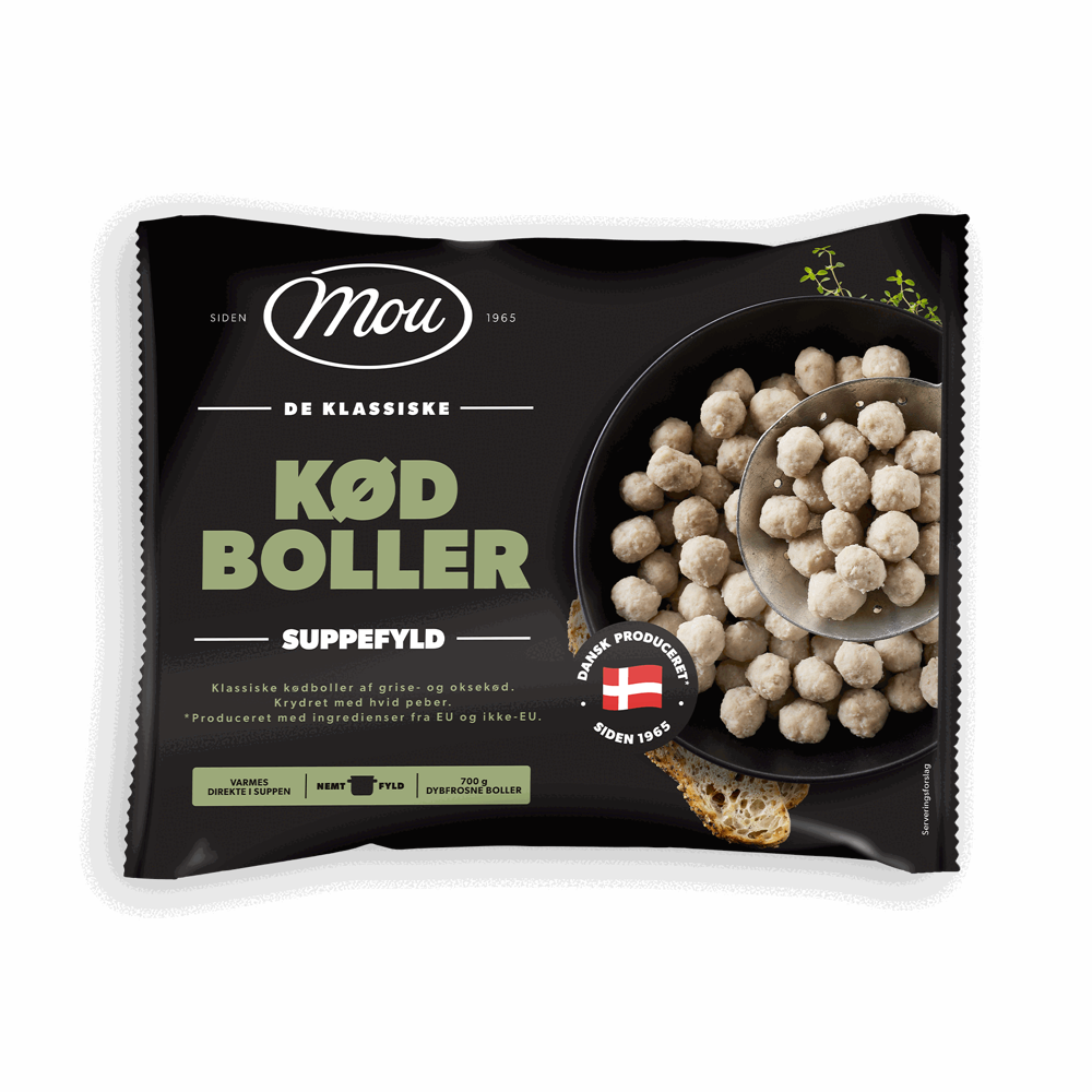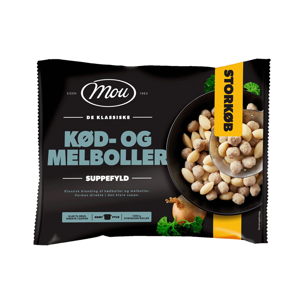 Klassisk blanding af kød- og melboller. Varmes direkte i den klare suppe