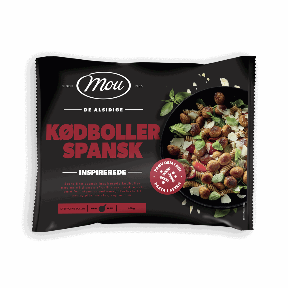 Spansk inspirerede kødboller af grise- og oksekød, smagt til med mild chili og rørt med tomatpure