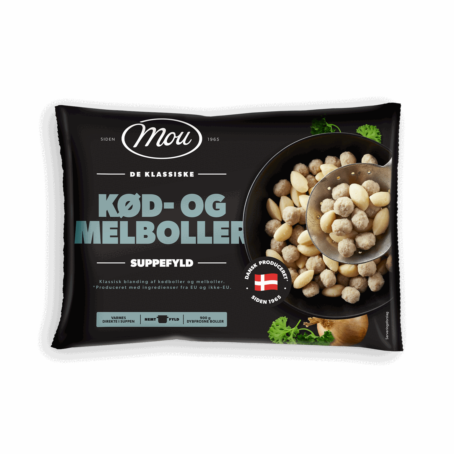 900 gFor mange hænger kødboller og melboller helt naturligt sammen med en klassisk klar suppe. Derfor er det lige så naturligt, at vi har pakket kød- og melboller sammen i én pose, så du nemt kan få begge dele i din suppe.