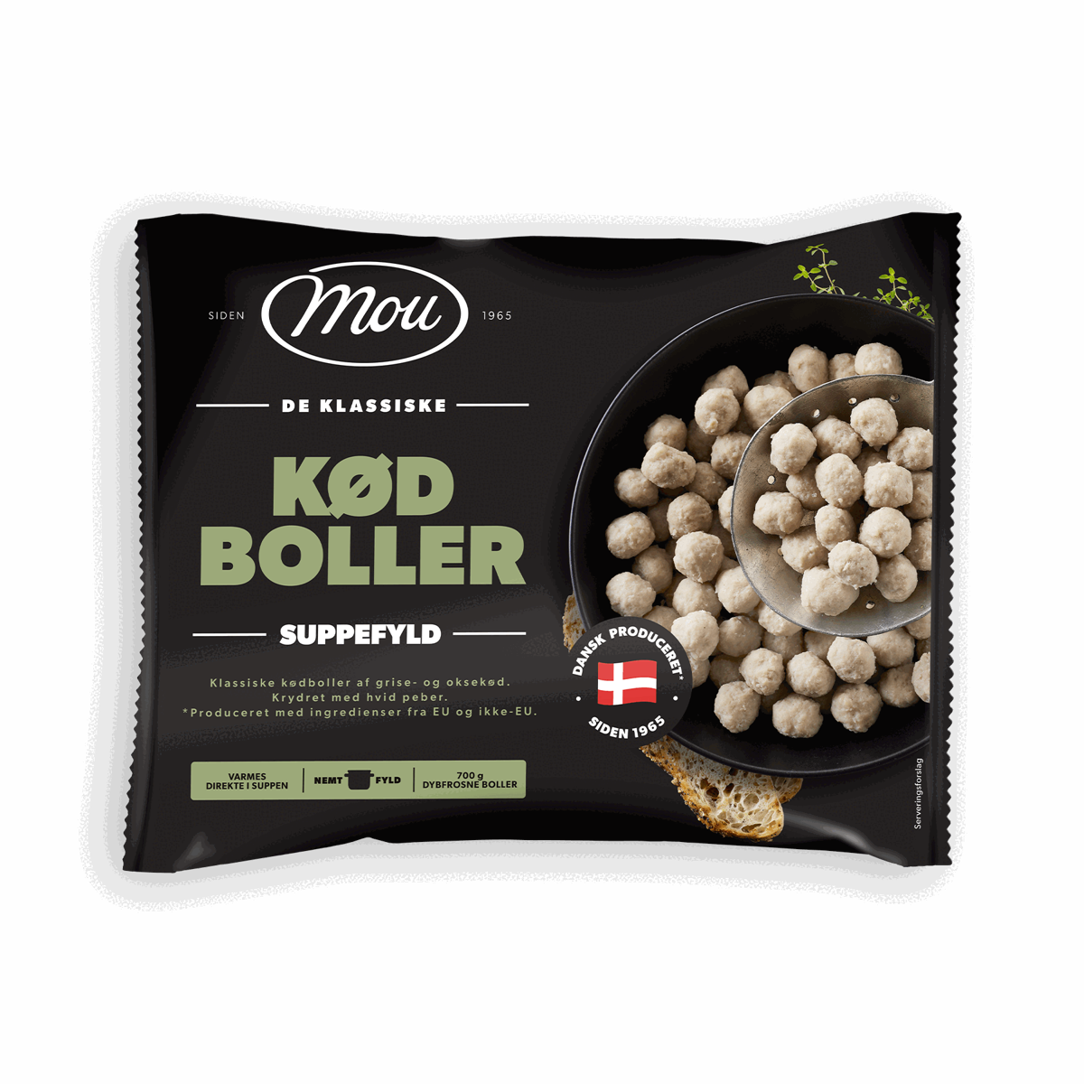 1400 gMange mener, at kød- og melboller hænger uløseligt sammen, og derfor har vi samlet begge boller i én pakke, så du kan få begge dele i din suppe. Kød- og melbollerne er det perfekte fyld til en klassisk klar suppe på en gråvejsdag, men du kan også bruge dem i cremede supper.