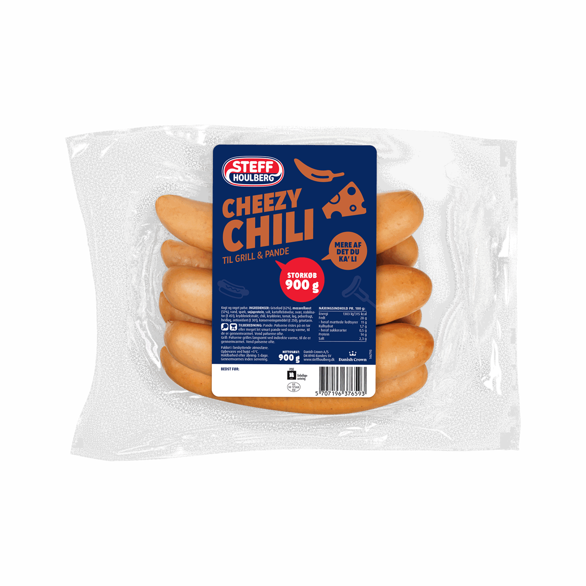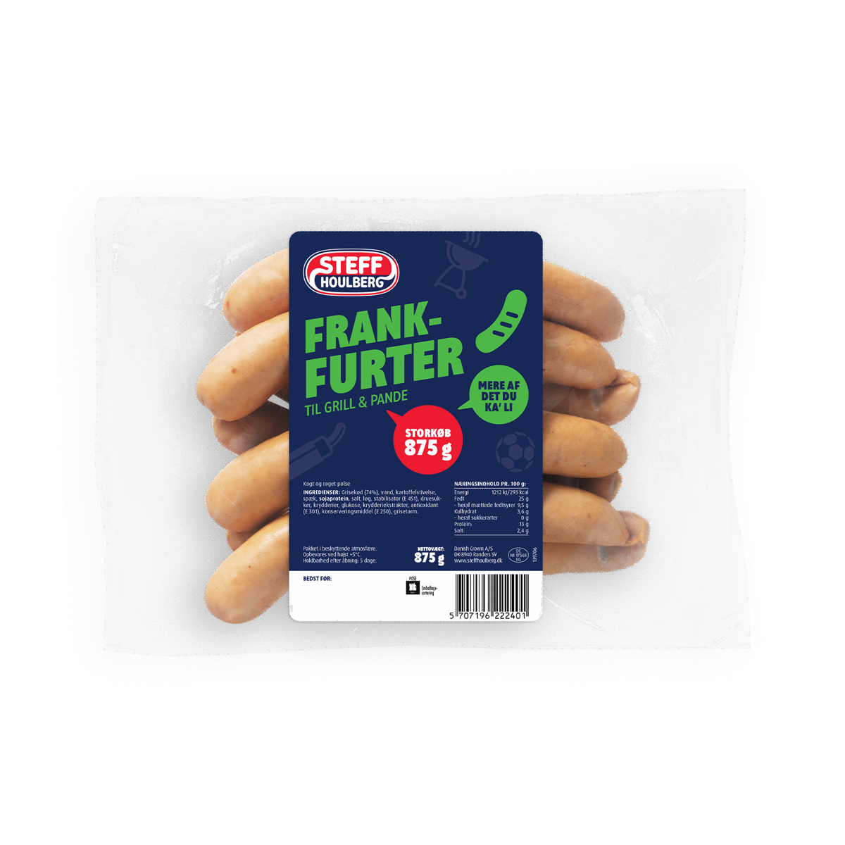 450 gNår du skal se bold med drengene. Når du skal forkæle dig selv med mad foran flimmeren. Når du skal have vennerne til grillaften. Og når du er sulten dagen derpå. Så kan du ikke komme uden om Steff Houlbergs Store Klaus kæmpe frankfurter.