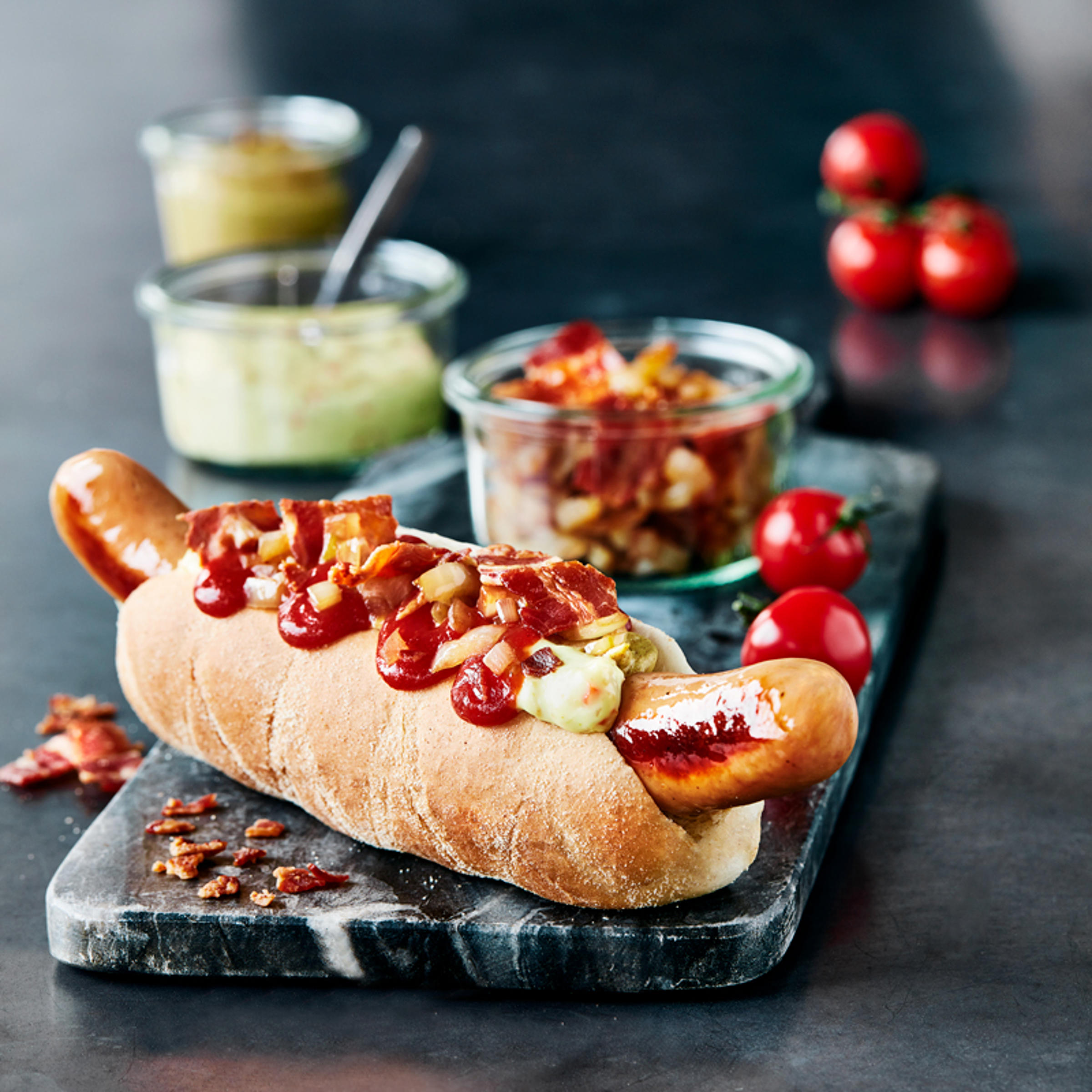 - Hotdog og congobajer. Nydes tit på vej hjem fra byen.