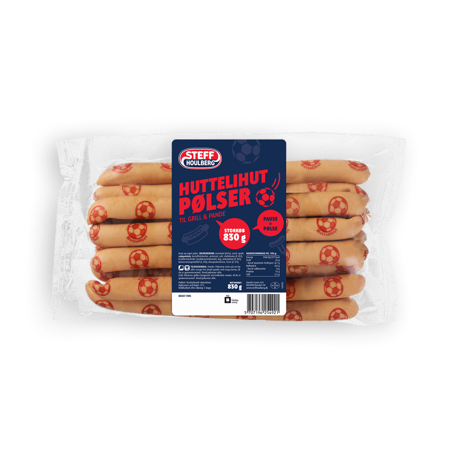 830 gSteff Houlbergs Huttelihut grillpølser er så lækre, at selv dommeren vil give dem et rødt kort for at være for fristende. Så spar på driblingerne og scor med smagen af Huttelihut grillpølser – det ultimative tilbehør til din fodboldfest!