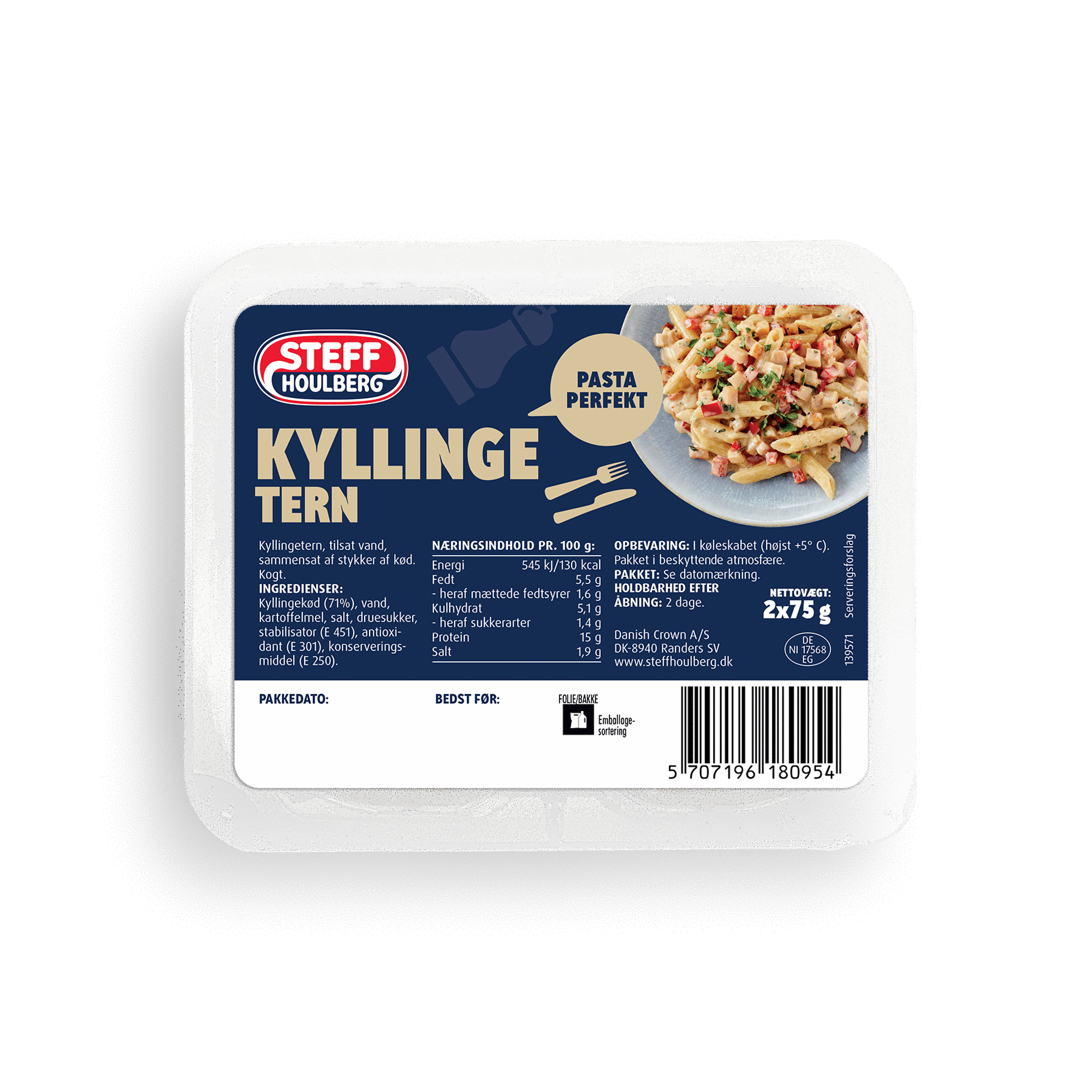 Ingredienser: Grisekød (80%), vand, spæk, SOJAPROTEIN, kartoffelstivelse, salt, druesukker, stabilisator (E 451), løg, krydderier, krydderiekstrakter, peberrod, glukosesirup, hydrolyseret SOJAPROTEIN, gærekstrakt, antioxidant (E 301), konserveringsmiddel (E 250), lammetarm.