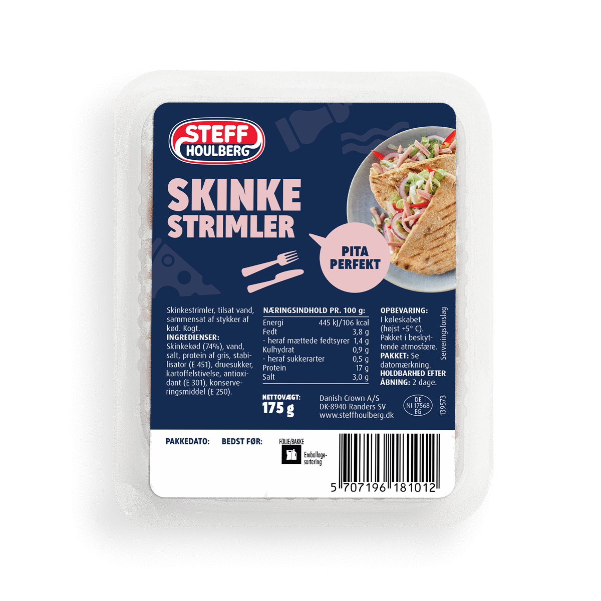 Ingredienser: Grisekød, grisefedt, salt, druesukker, krydderier, svær, krydderiekstrakter, antioxidant (E 301, E 192), hvidløg, urter, starterkultur, konserveringsmiddel (E 250), surhedsregulerende middel (E 330). Til 100g færdigvare er anvendt 122g grisekød.
