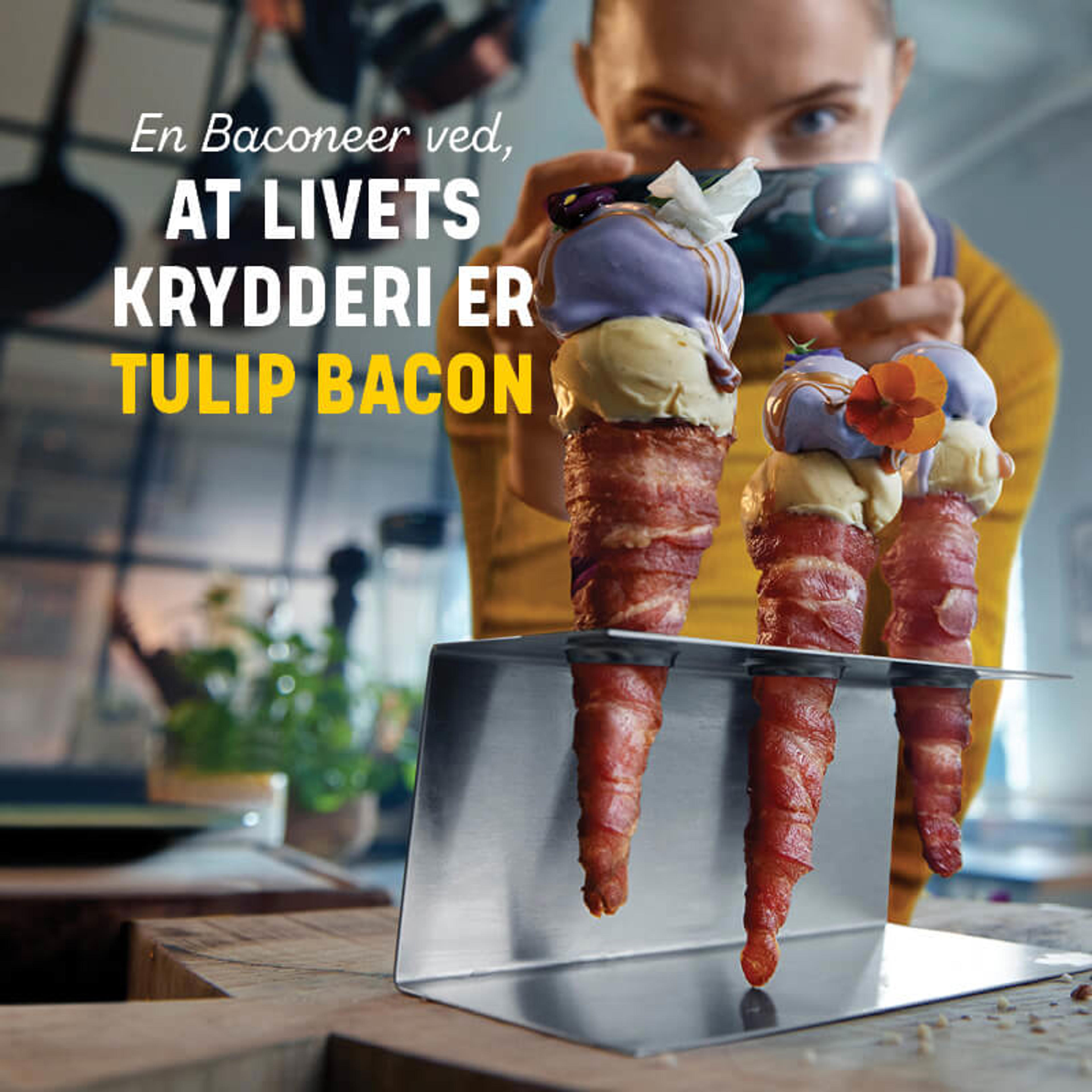 Der er dem, der kan lide bacon, og så er der Baconeers. Kulinariske pionerer og skabere af sprødstegte genistreger. En Baconeer ved, at enhver forret, dessert og alt derimellem smager bedre med Tulip bacon. Og for en Baconeer, er der ikke er noget finere end at dele deres lidenskab og viden. Baconeer er en ny definition, der skal bringe stolthed og samvær for alle baconelskere derude. Vi tror på, at der er en Baconeer i os alle, det er bare et spørgsmål om at træde ud i det sprøde.