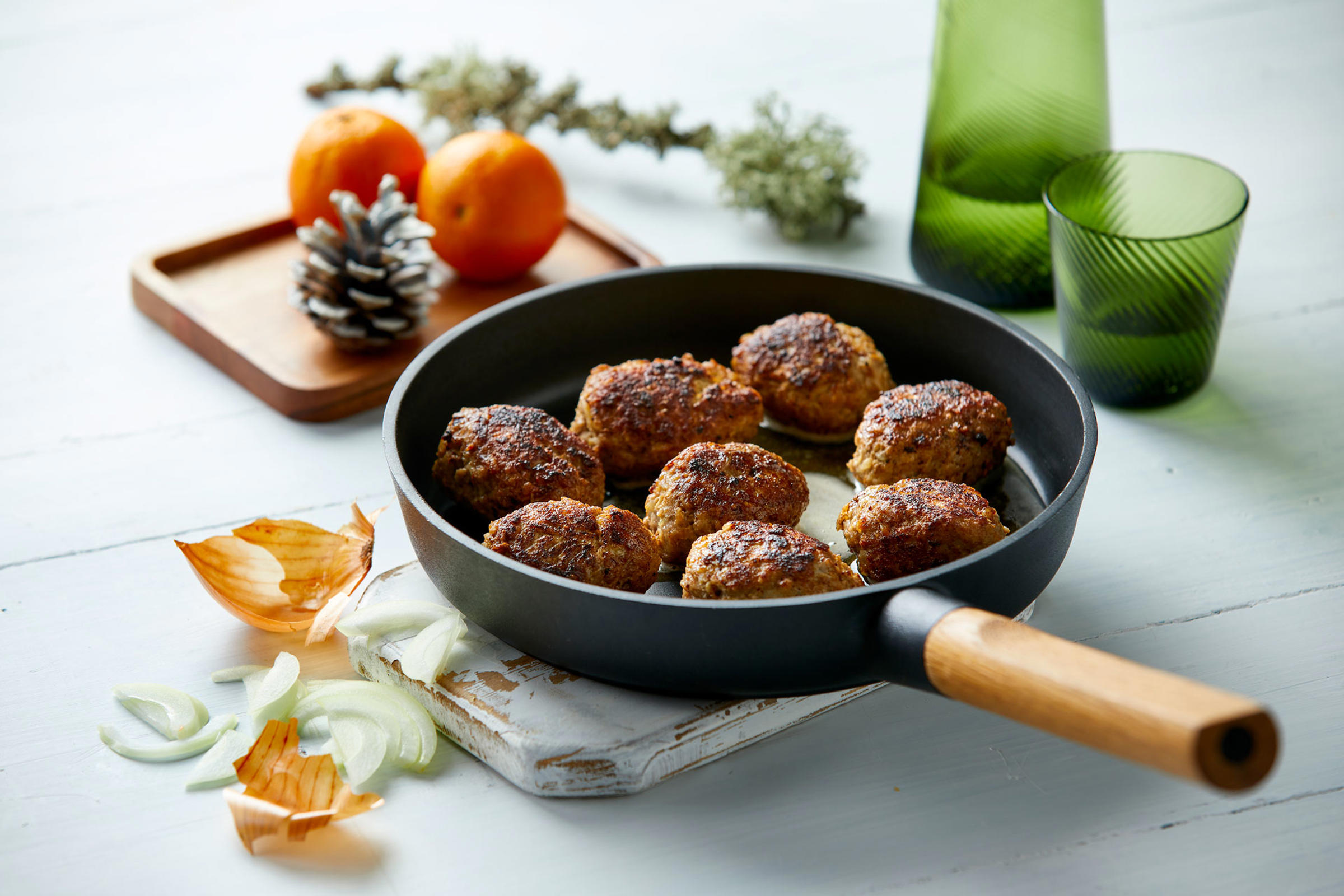 Vi har taget nøje udvalgte råvarer og rørt dem til velsmagende frikadellefars, der er formet og pandestegt, så frikadellerne har en rigtig lækker stegeskorpe.