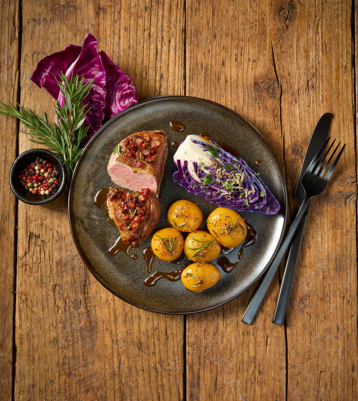 Asiatisk inspireret salat med enebær- og anisrøget andebryst