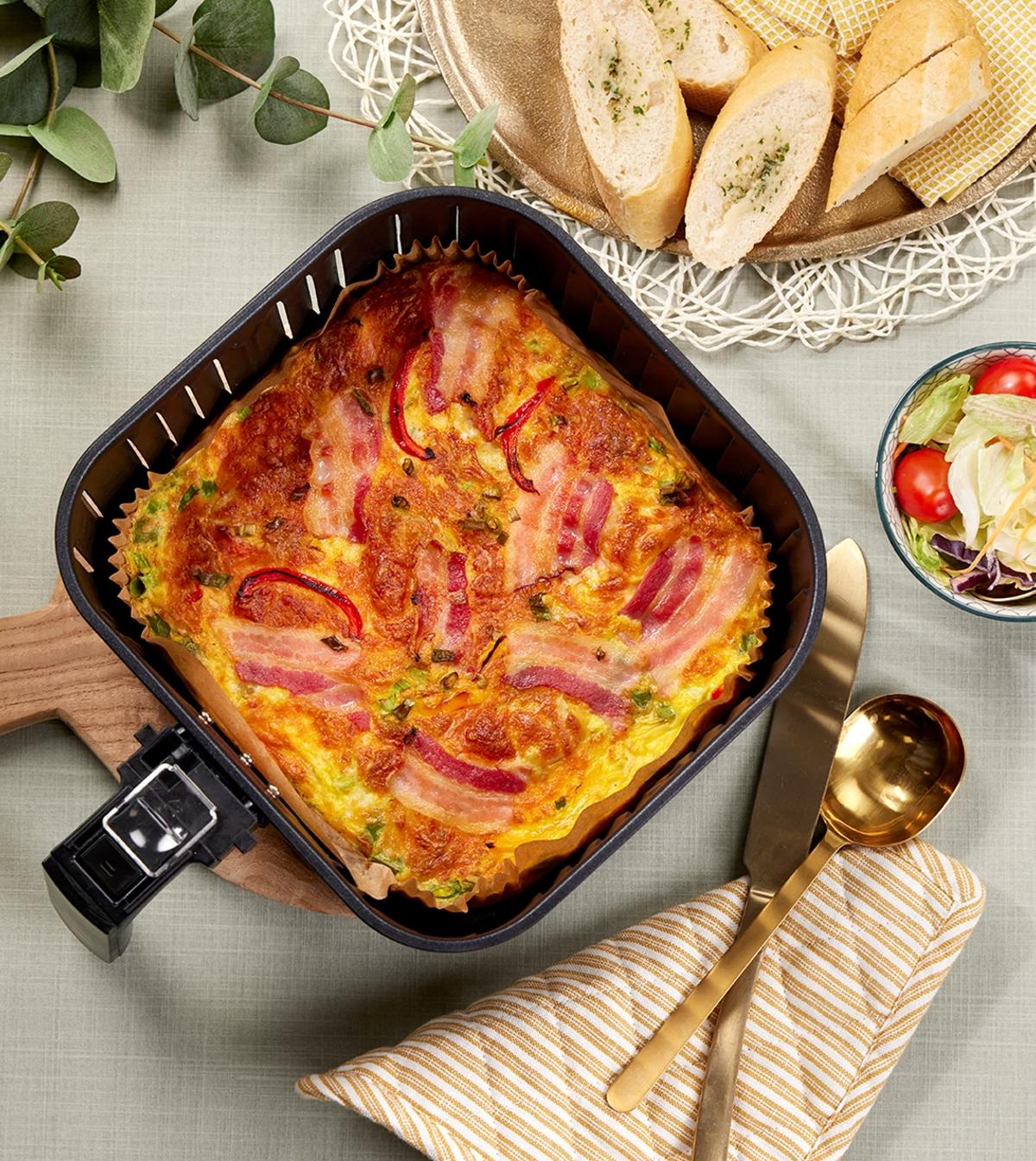 Prøv denne lækre og enkle opskrift på asparges med bacon tilberedt i airfryer. Med kun få ingredienser kan du skabe en skøn ret, der passer perfekt som forret eller tilbehør. Kombinationen af sprødt bacon, saftige asparges og en sød sirup gør denne ret til en sikker vinder. Top med friske forårsløg for ekstra smag og farve.