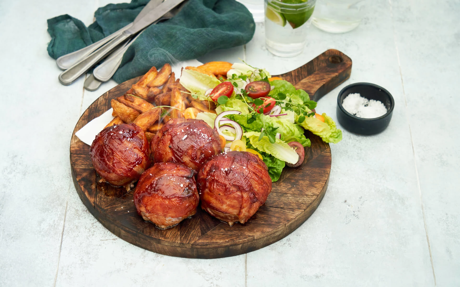 Bare rolig, BACON:PERSON-ratioen er cirka den samme, som ved den klassiske Bacon Explosion. For at gøre Bacon Bomberne ekstra lækre kan du tilsætte bacontern i farsen. Dog skal du være lidt påpasselig med at salte farsen for meget, da baconternene allerede tilfører den salte smag.