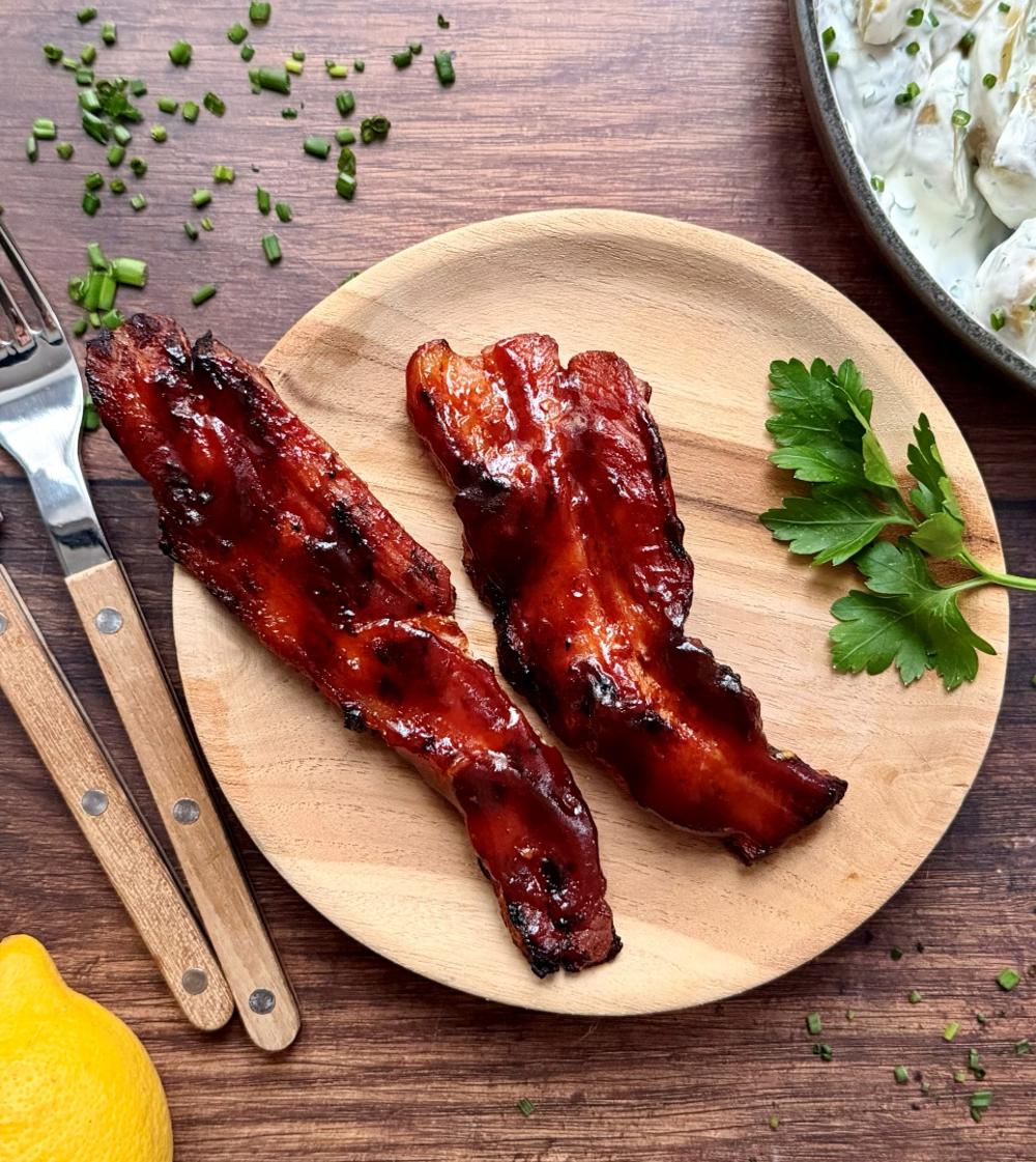 Bacon steaks med grillet pastasalat