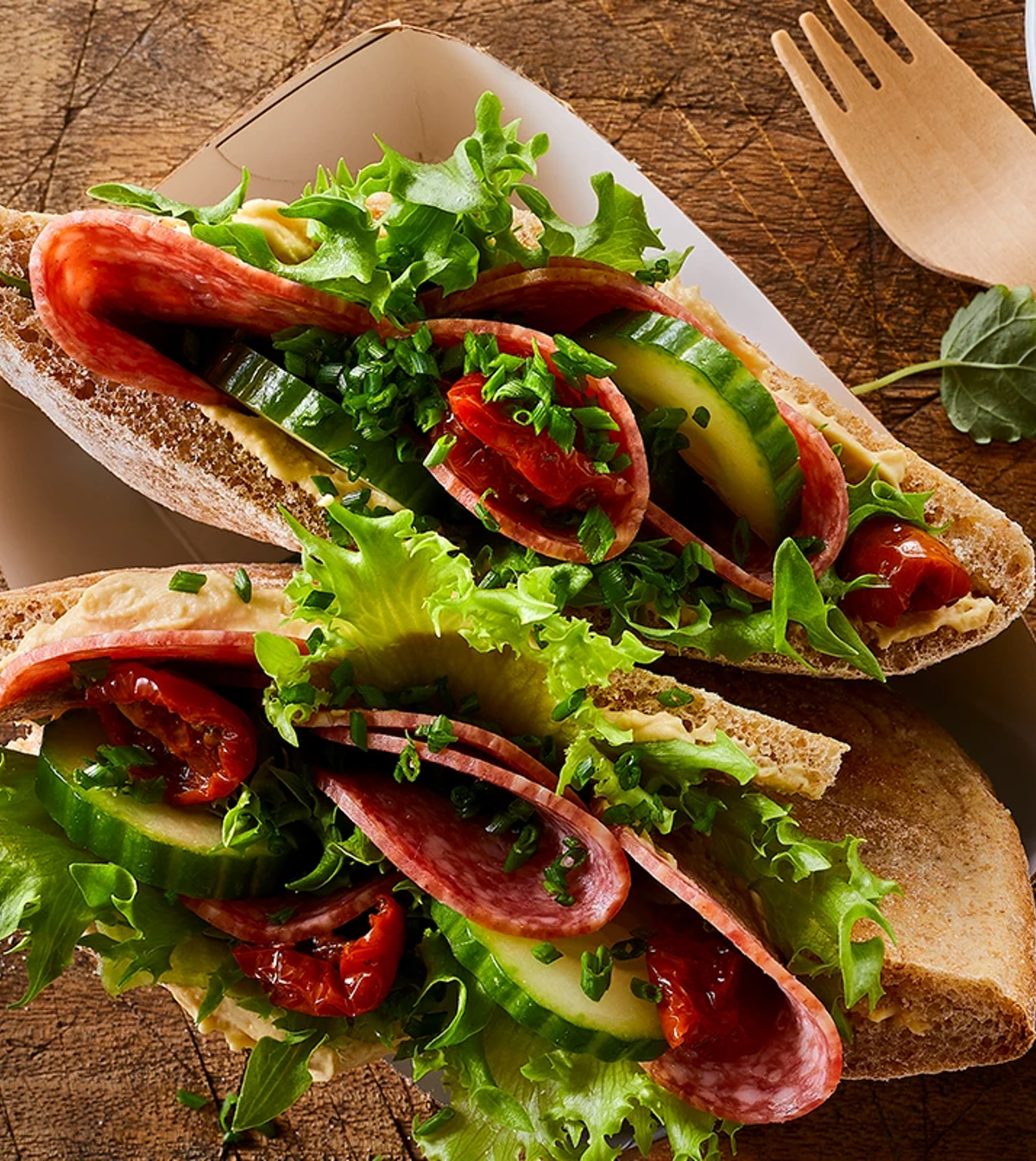 Bagels er fantastiske som sandwichbrød, især når de fyldes med lækkert kyllingepålæg, hummus, mozzarella, soltørrede tomater og friskt grønt. Vi viser dig her, hvordan du laver en sprød og smagfuld bagel sandwich, der får tænderne til at løbe i vand.