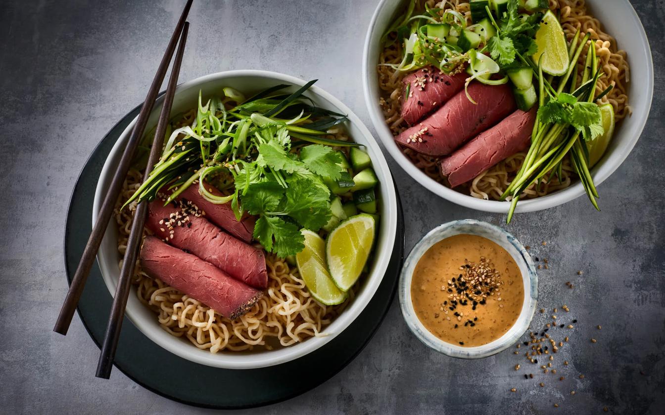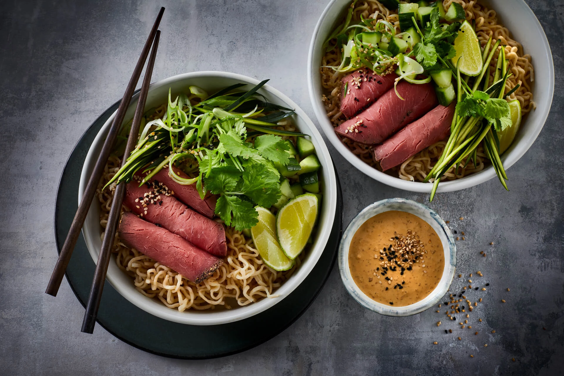 Prøv vores bud med roastbeef, nudler og andre lækkerier. Spis bowl’en med roastbeef enten til frokost eller aftensmad – når det skal være lidt mere vovet, men stadig nemt og lækkert. Retten kan nemt varieres med andet kødpålæg og grøntsagsresterne fra køleskabet.