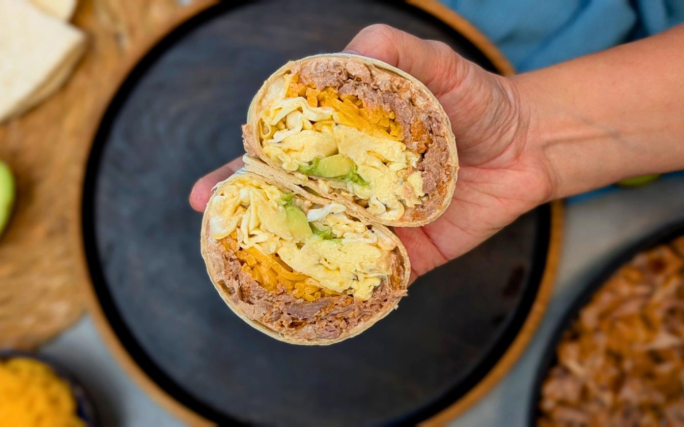 Det hele samles i en blød, lun tortilla, og kan serveres ved morgenbordet i weekenden – eller pakkes som to-go morgenmad i hverdagens travlhed. En morgenmadsburrito, der sætter gang i dagen på den bedste måde.