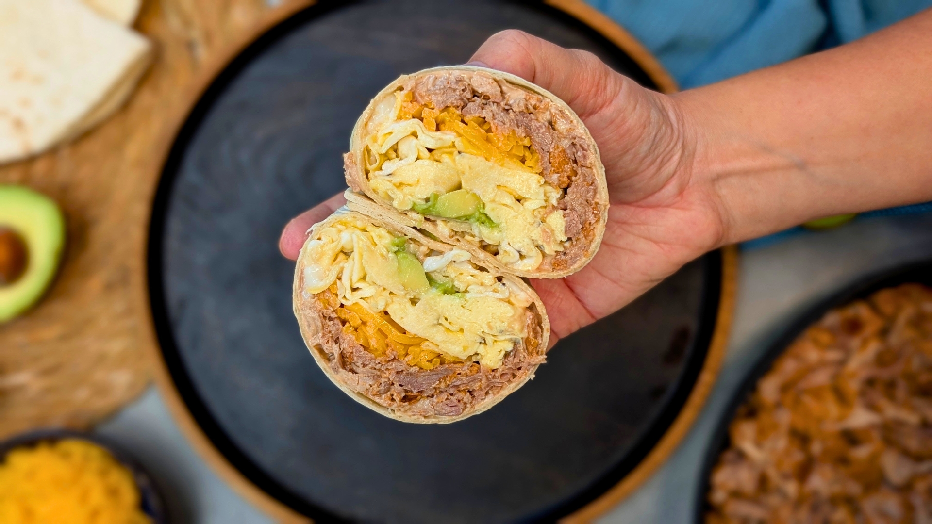 Det hele samles i en blød, lun tortilla, og kan serveres ved morgenbordet i weekenden – eller pakkes som to-go morgenmad i hverdagens travlhed. En morgenmadsburrito, der sætter gang i dagen på den bedste måde.