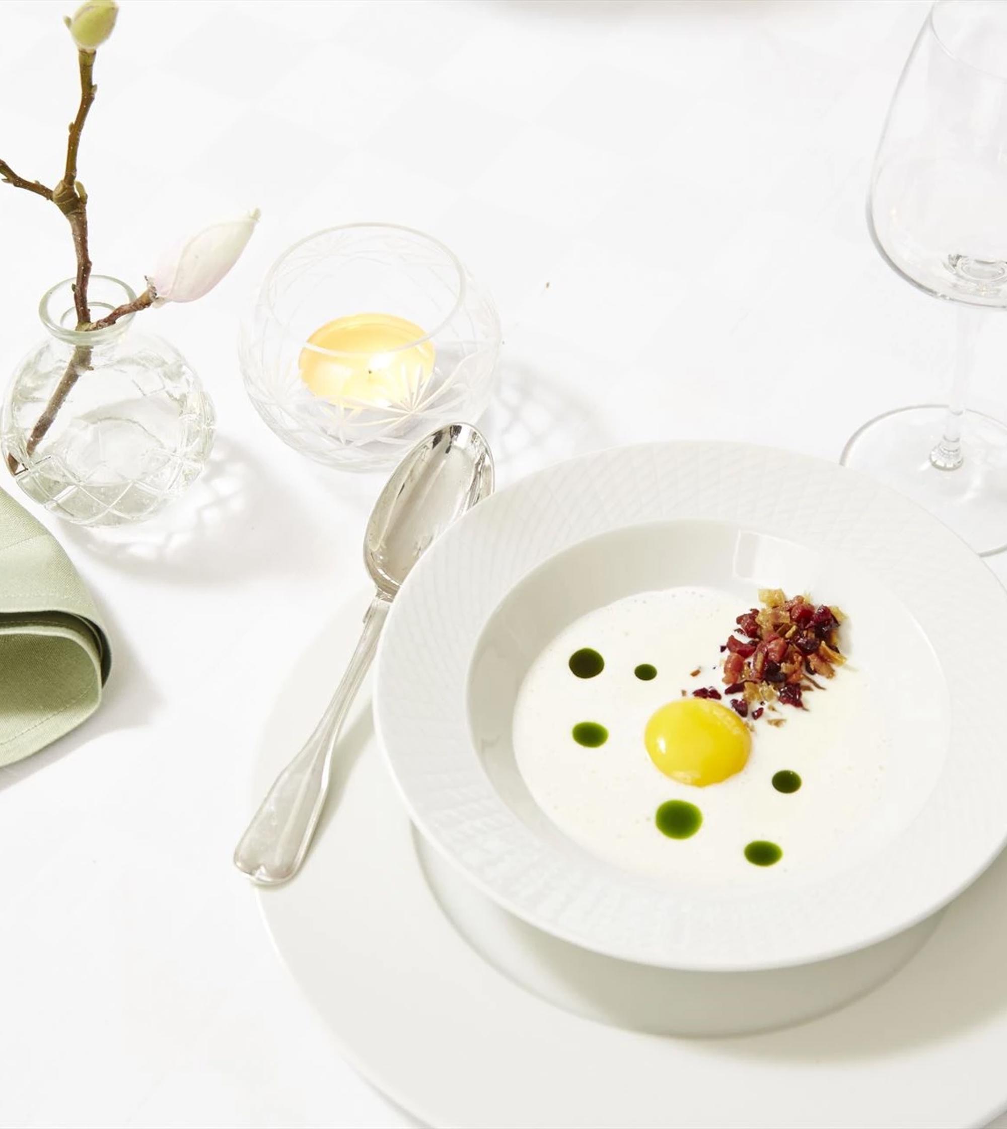 Topping: top med frisk dild og sprøde skiver bacon for et gastronomisk udtryk.