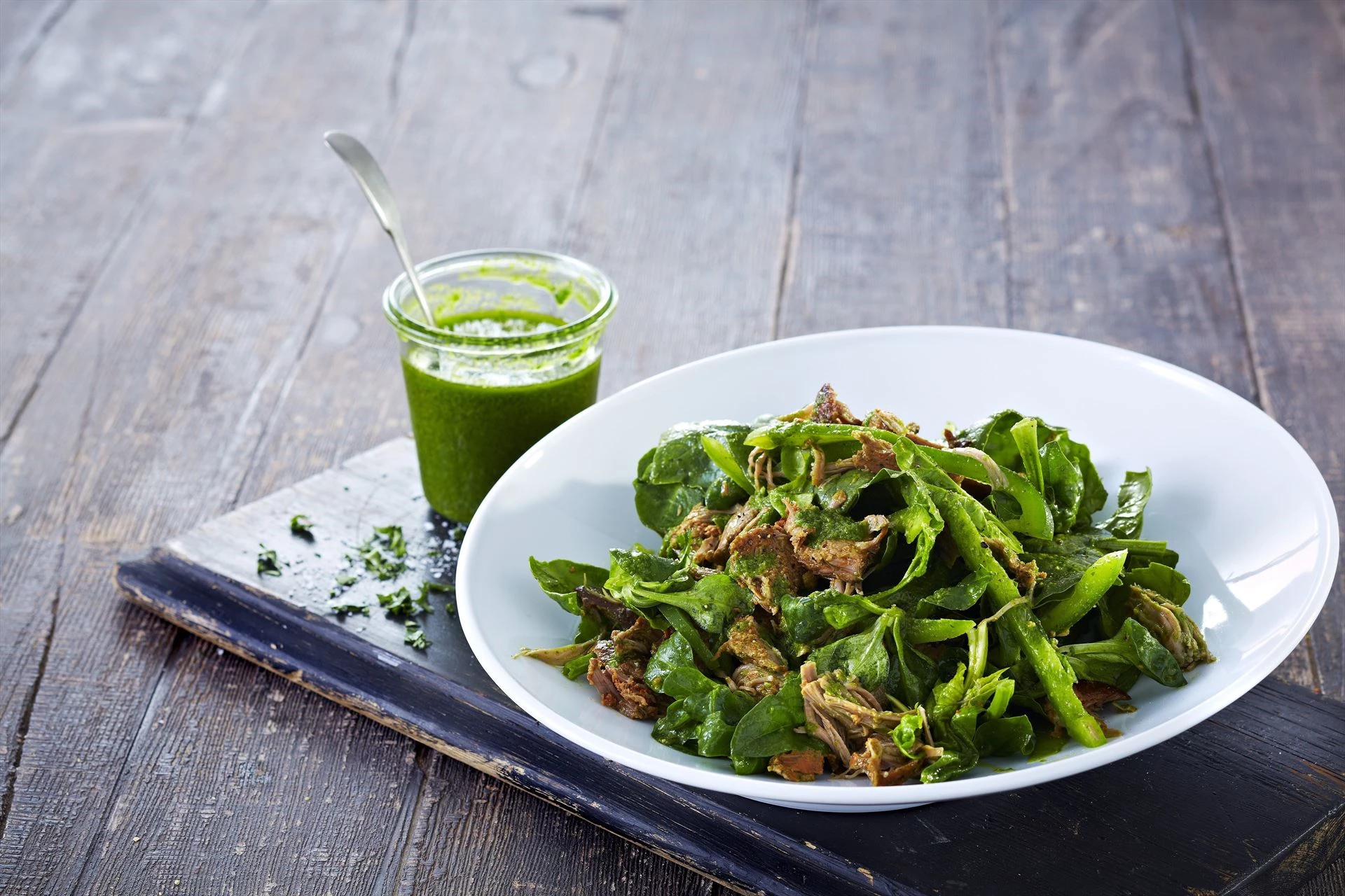 Grøn salat med Pulled Turkey