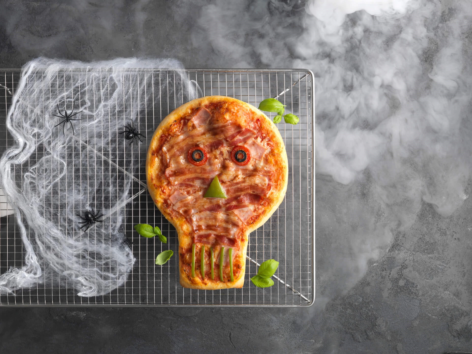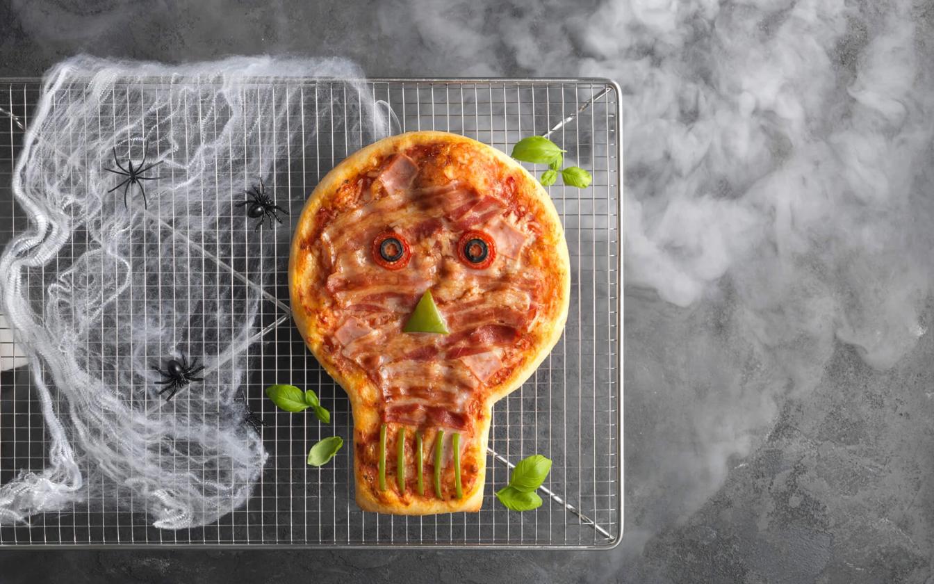 Denne opskrift er en ny og sjov måde at spise den klassiske pizza på, og et hyggeligt og børnevenligt indslag særlig velegnet til Halloween. Fordi vi har brugt ingredienserne til at lave ansigtet på pizzaen, er der et væld af muligheder for at skabe lige det udtryk på pizzaen, som du ønsker.