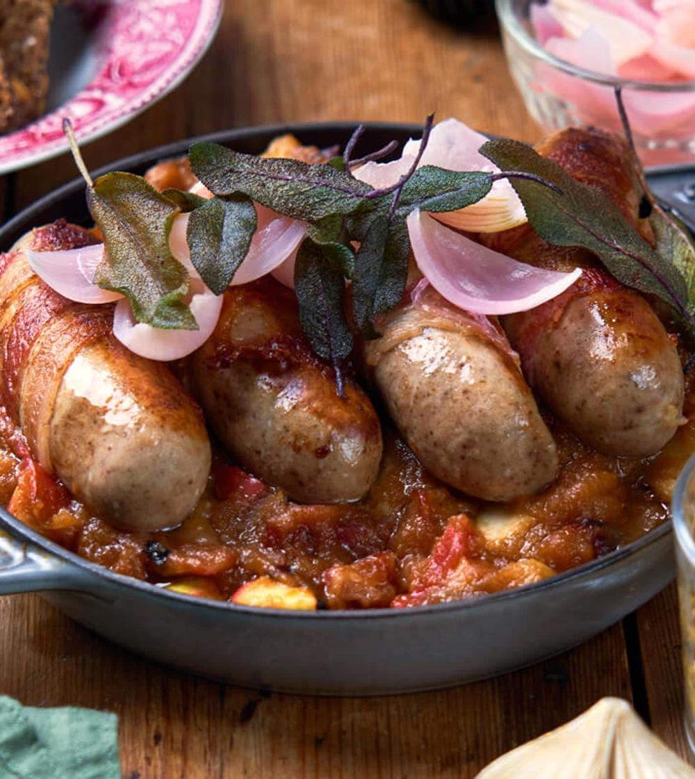 Pift julebordet op ved at twiste de klassiske juleretter, som fx denne medister med baconsvøb. Medister og bacon smager nemlig skønt sammen og vil med garanti blive taget rigtig godt imod af både børn og voksne.