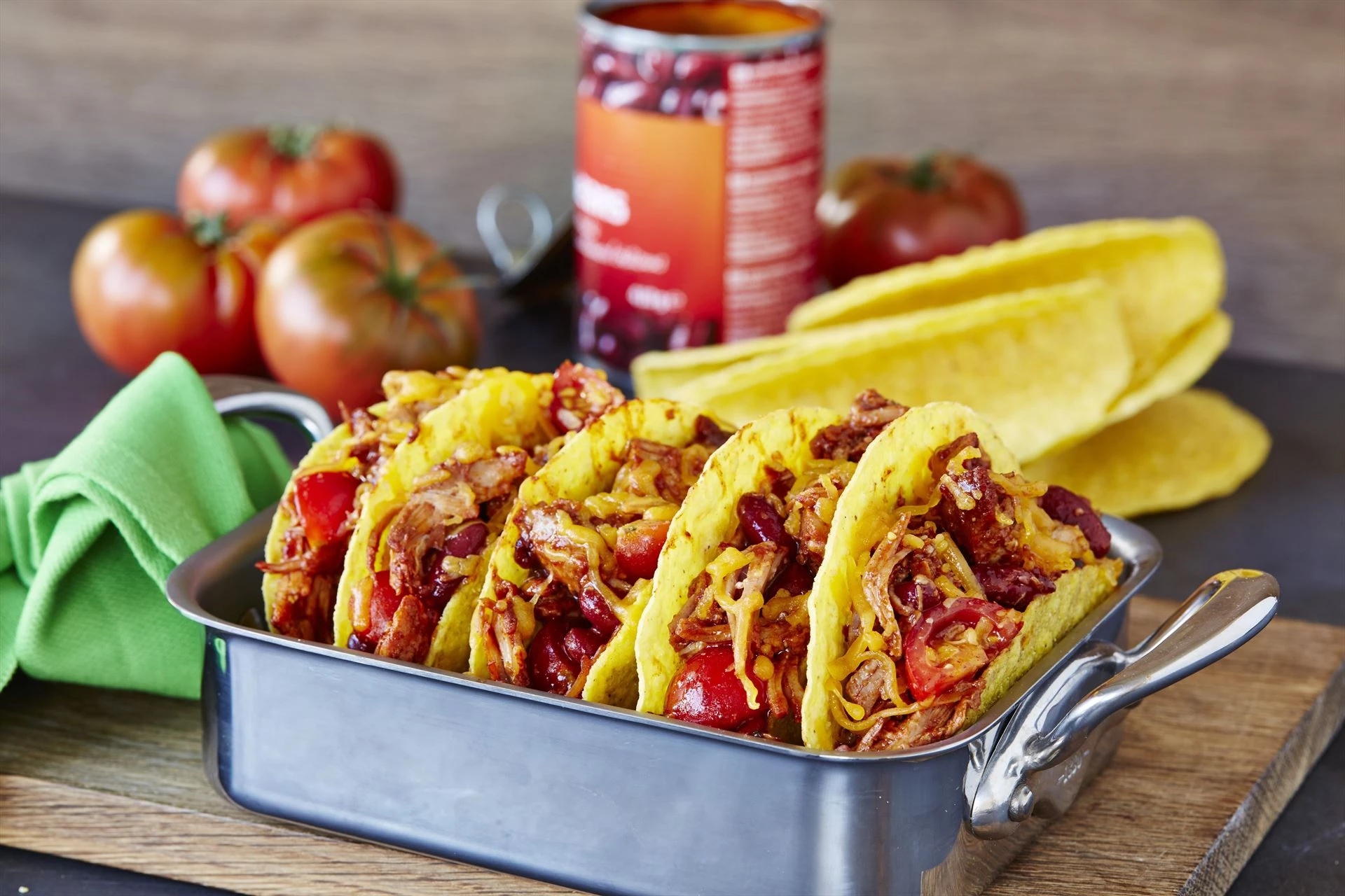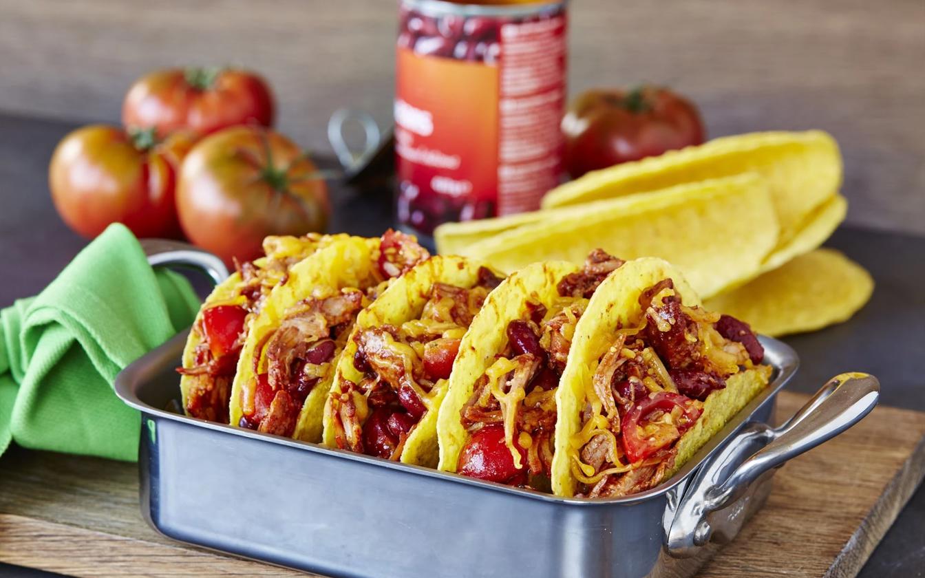 Giv taco-aftenen et ekstra twist med vores mexicansk inspirerede tacos med pulled pork. Her møder saftigt, langtids-tilberedt pulled pork krydrede mexicanske smage i bløde tortillapandekager, der bare indbyder til at bygges og nydes ved bordet. Disse tacos er perfekte som weekendmad med venner og familie, som fredagshygge eller når du vil lave noget, der føles lidt hyggeligt, lidt festligt og en hel del lækkert. Servér med dine yndlings-tacotilbehør og lad alle bygge deres egen version.