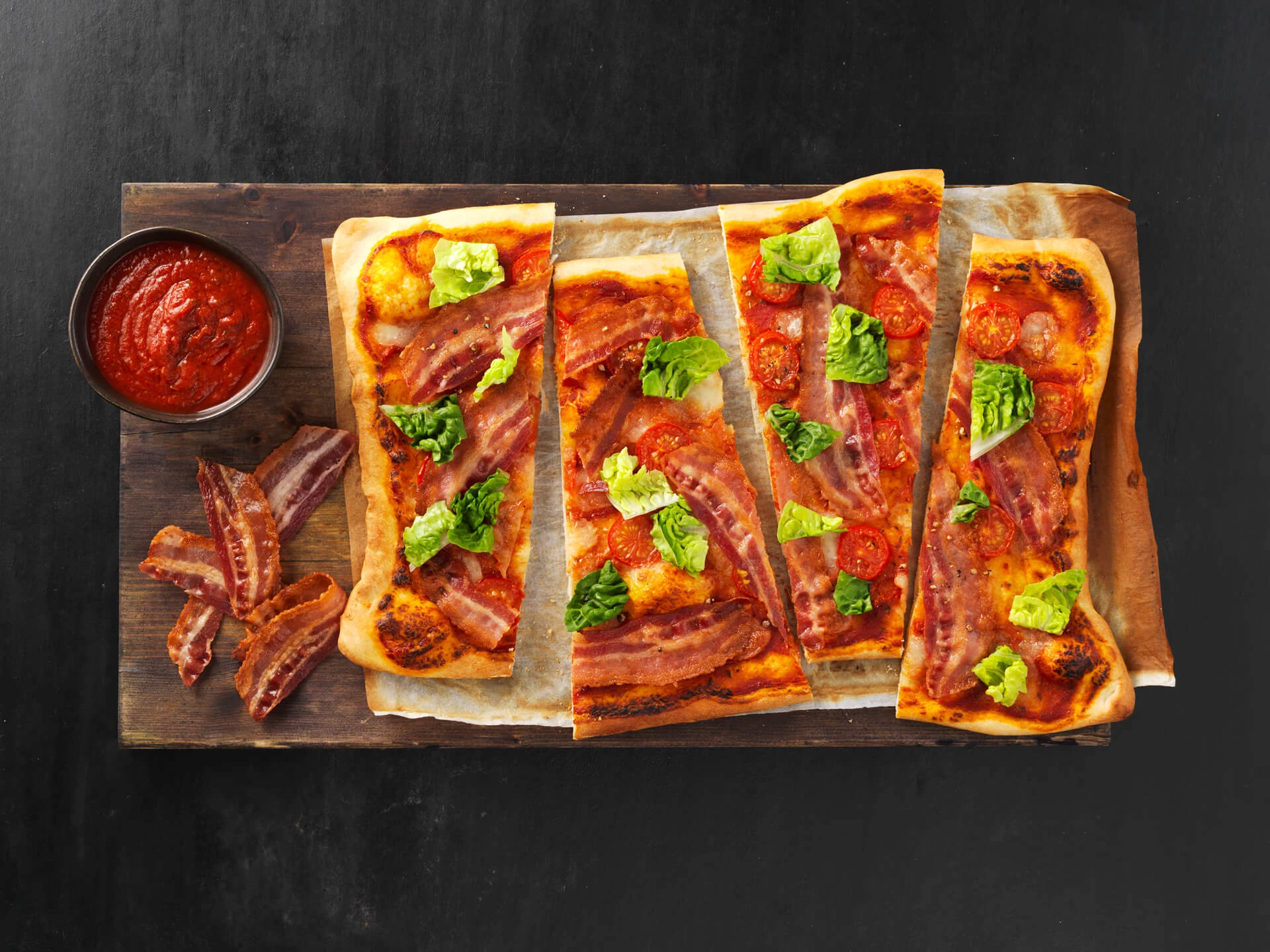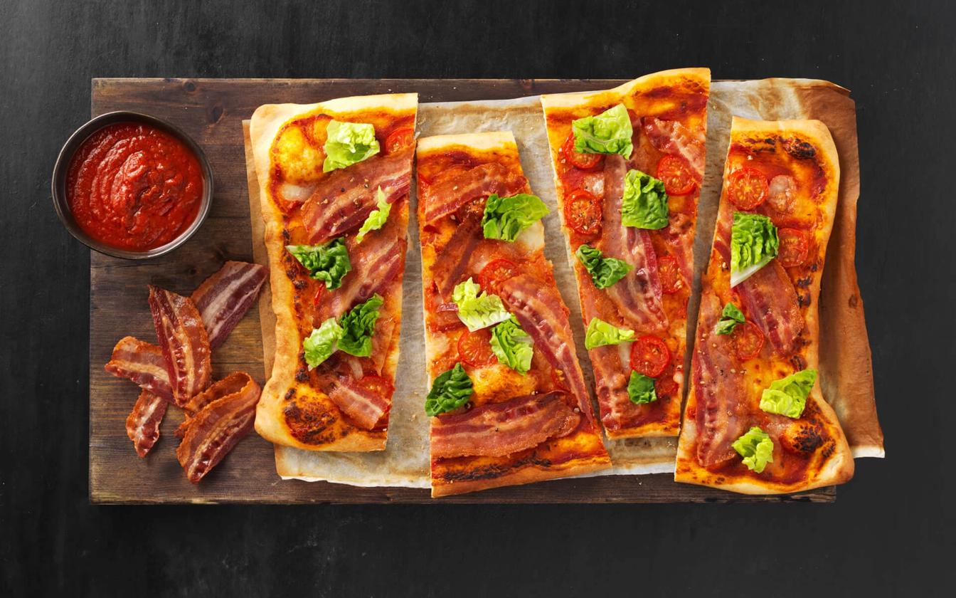 Denne opskrift består af en nem og hurtig pizza med escarole salat og bacon. I opskriften har vi anvendt en færdig dej, men du kan også sagtens lave den helt fra bunden selv. Pizzaen er perfekt til både frokost og aftensmad.