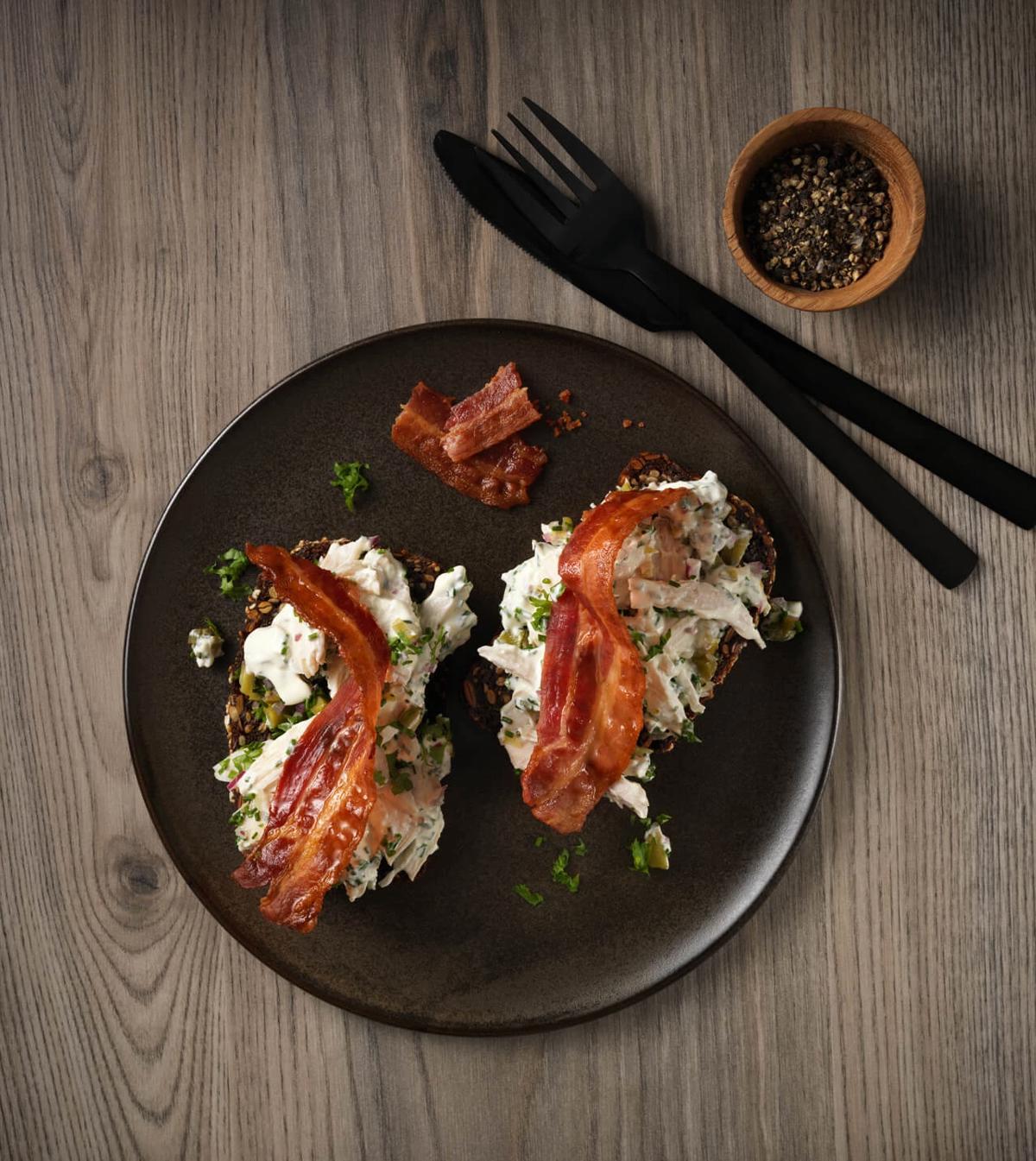Rugbrød smager bare så meget bedre, når det bliver ristet sprødt i baconfedt. Og når det så serveres med stenbiderrogn vendt i cremefraiche citronskal, finthakket rødløg og sprød bacon, er der ikke et øje tørt.