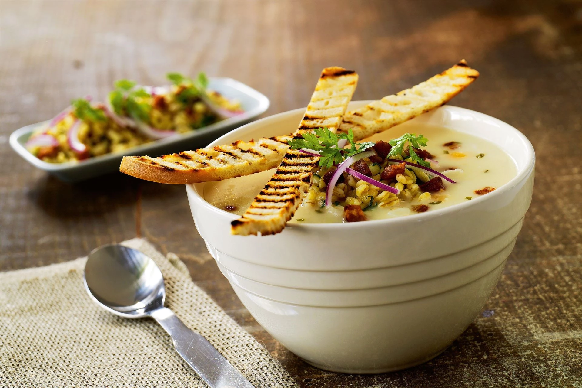 Rodfrugtsuppe med hvedekerner og bacon er en varm og fyldig suppe, der kombinerer sødmen fra rodfrugter med sprødt bacon og sprøde hvedekerner. Denne suppe er perfekt til kølige dage, hvor du har lyst til en smagfuld ret, der samtidig er enkel at tilberede.