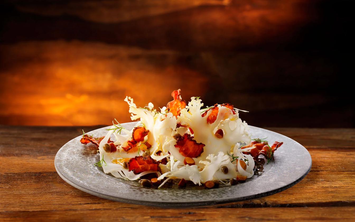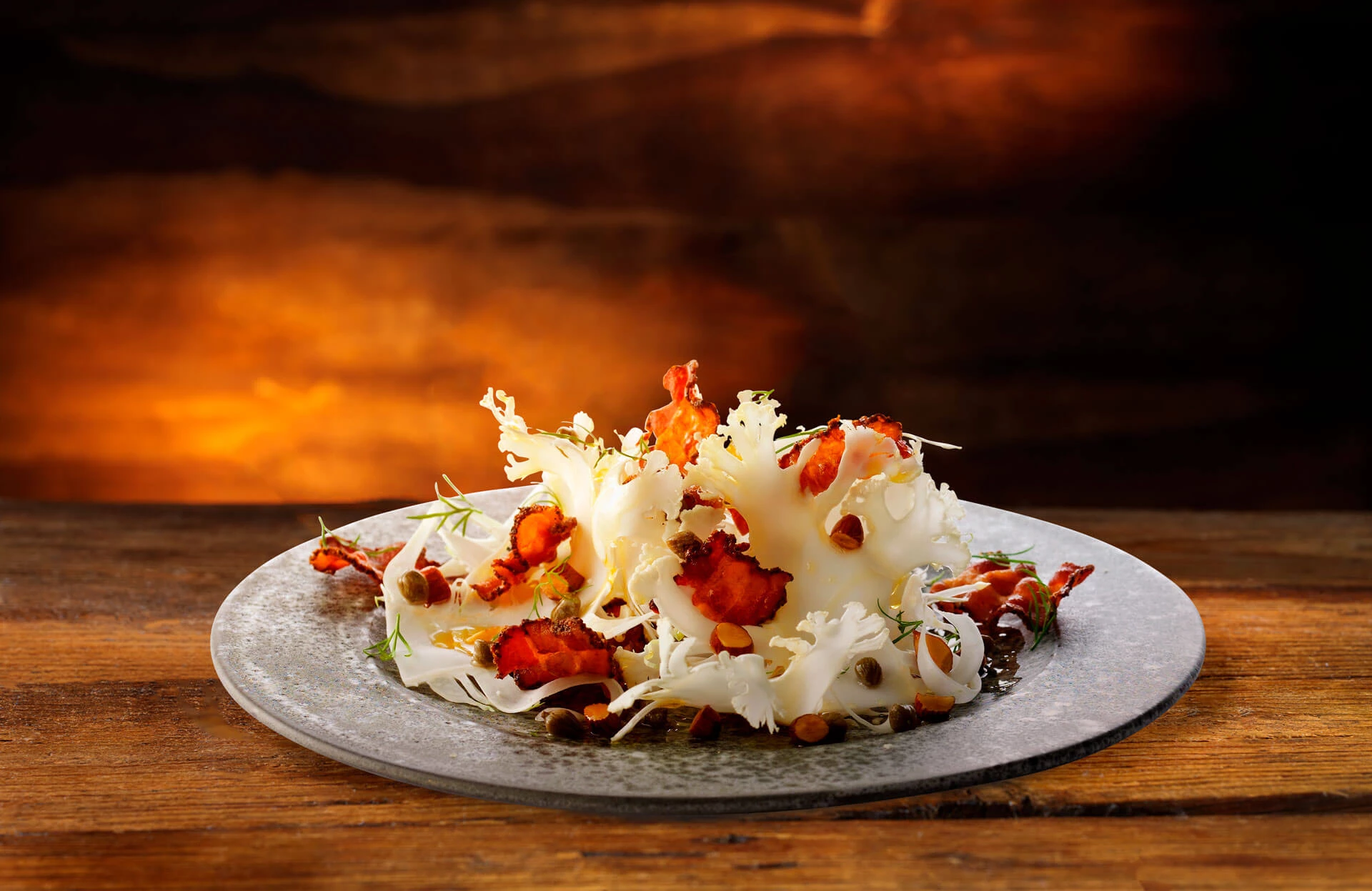 Salat med blomkål, sprødstegt bacon og brunet smør