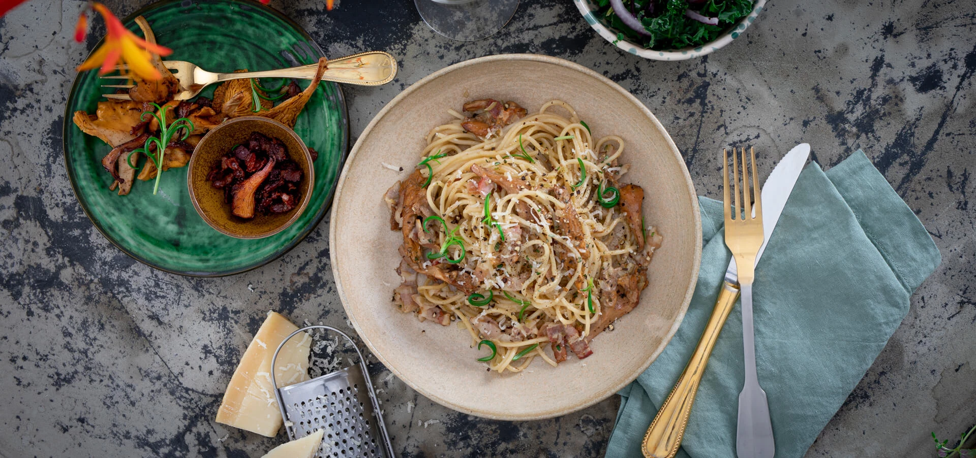 Pasta med svampe, bacon og fløde er og bliver en klassiker i manges køkken. Her bruger vi kantareller, som tilfører retten en lækker nøddesmag. Sammen med den saltede bacon giver det en dejlig balance i retten.