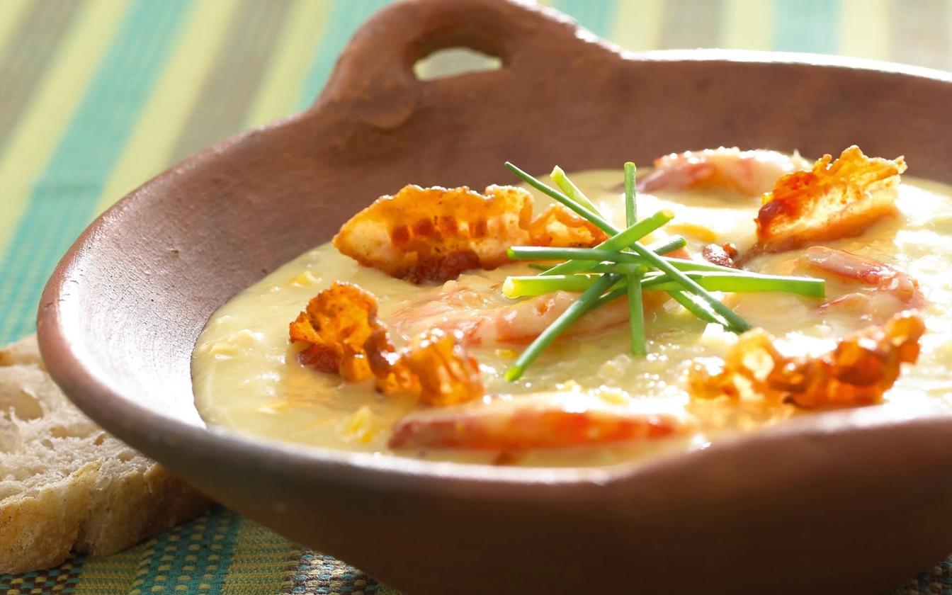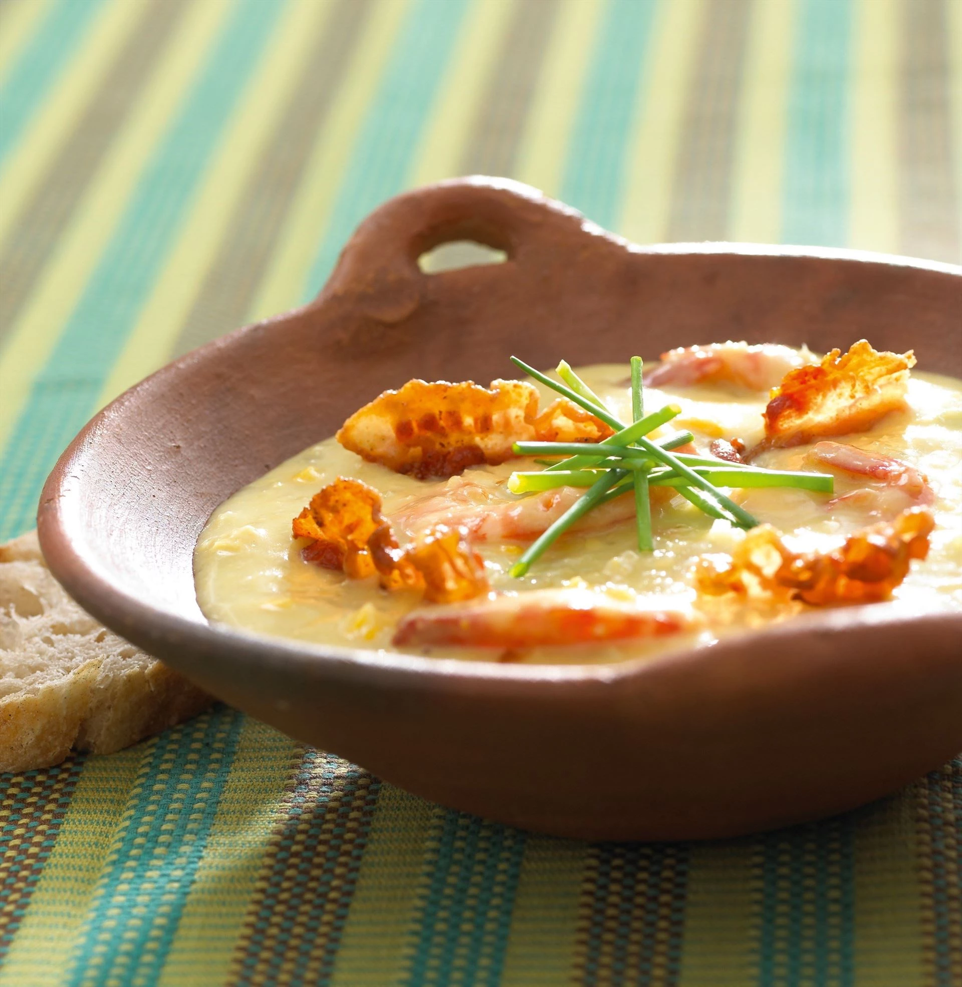 Suppe alla bacon-majs chowder med rejer – en himmelsk kombination af cremethed, sødme og salt sprødhed! Den klassiske majs chowder får ekstra karakter med sprødt bacon og saftige rejer. Perfekt som en forret eller hovedret, der både varmer og forkæler smagsløgene.