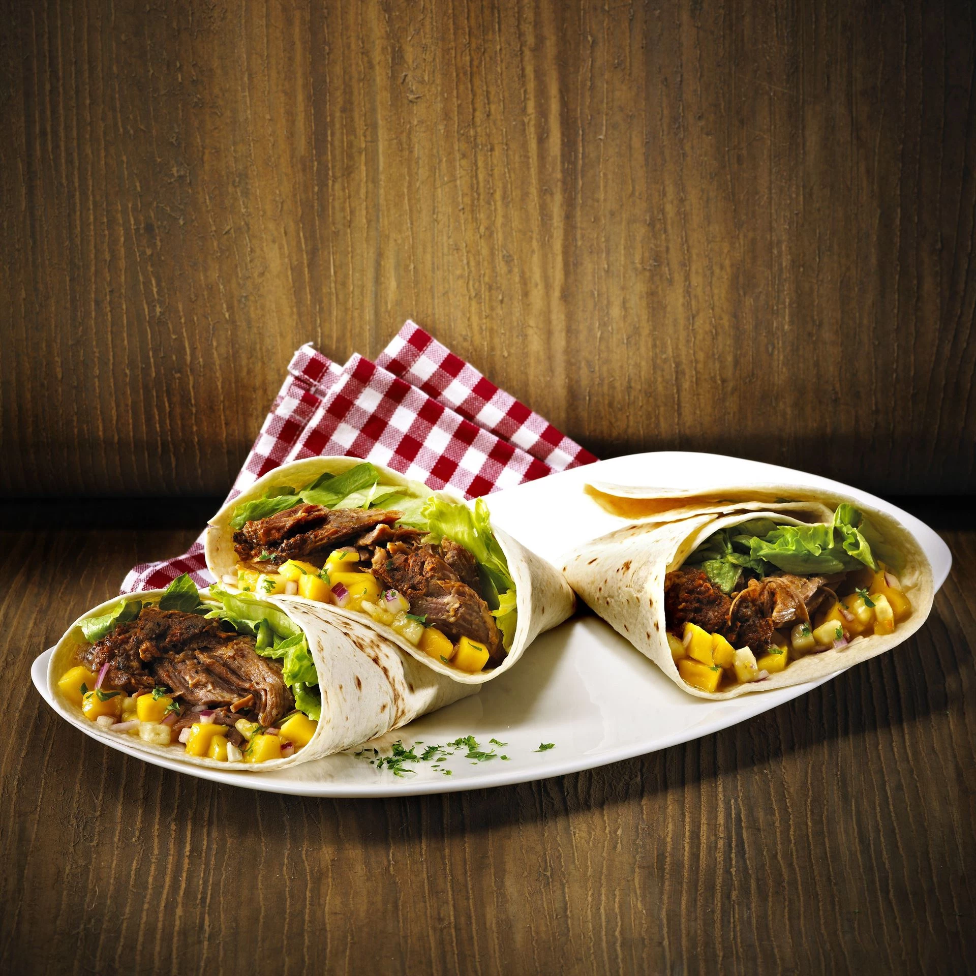 Tortillas med pulled pork og mango-bananrelish