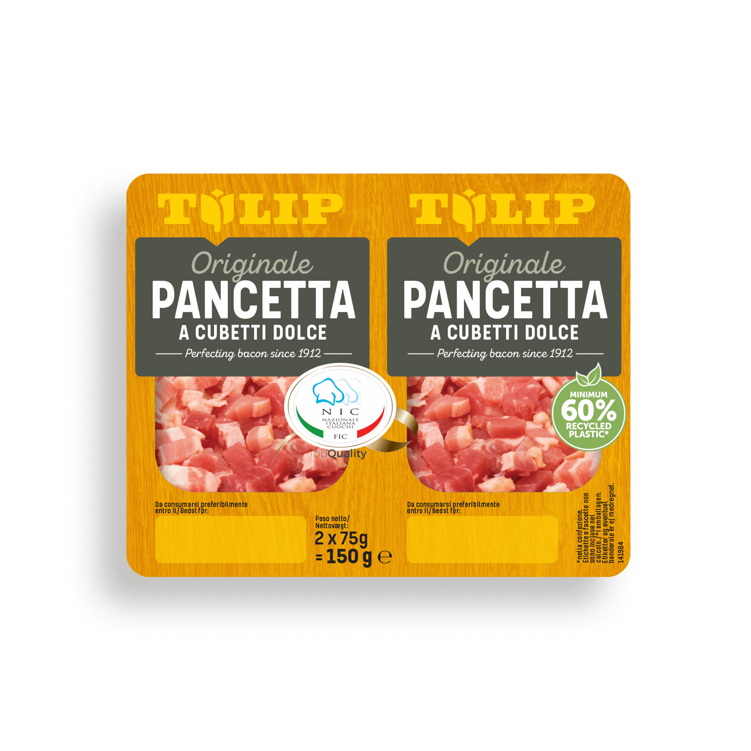 150 gItaliensk mad er en populær spise både i og uden for hjemmet. Derfor lancerer vi nu Tulip Pancetta Bacon, som med sin tørrede kvalitet og urøgede smag er den perfekte smagsgiver i italienske retter.