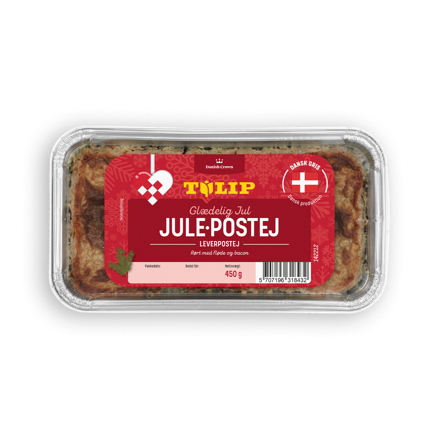 450 gTulip Julepostej er rørt med bacon og fløde, der giver den helt rigtige smag og stemning på et veldækket julebord - uanset om den serveres kold eller varm
