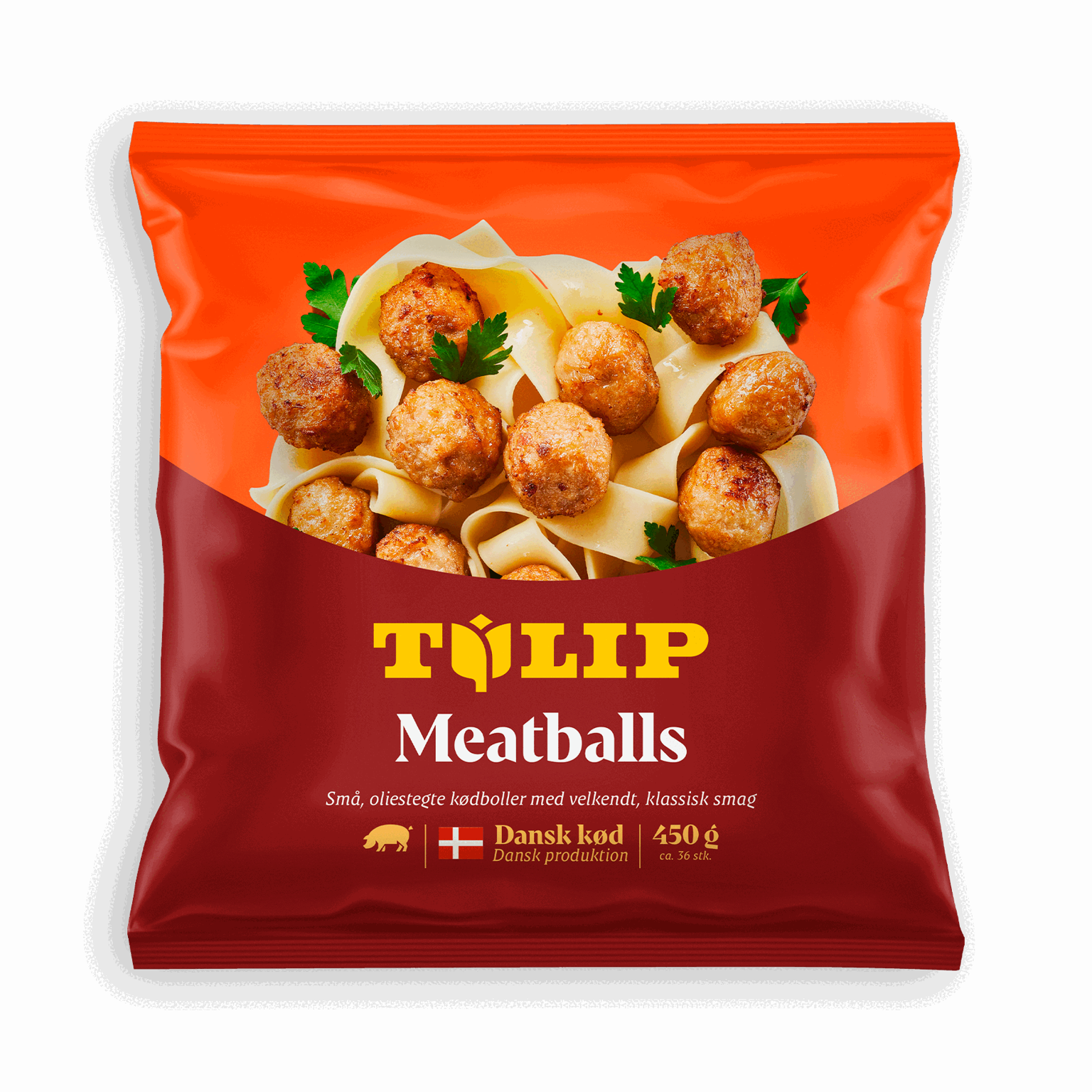 450 gTulip Meatballs er små, oliestegte kødboller med den velkendte klassiske smag. De er rørt af nøje udvalgte råvarer.